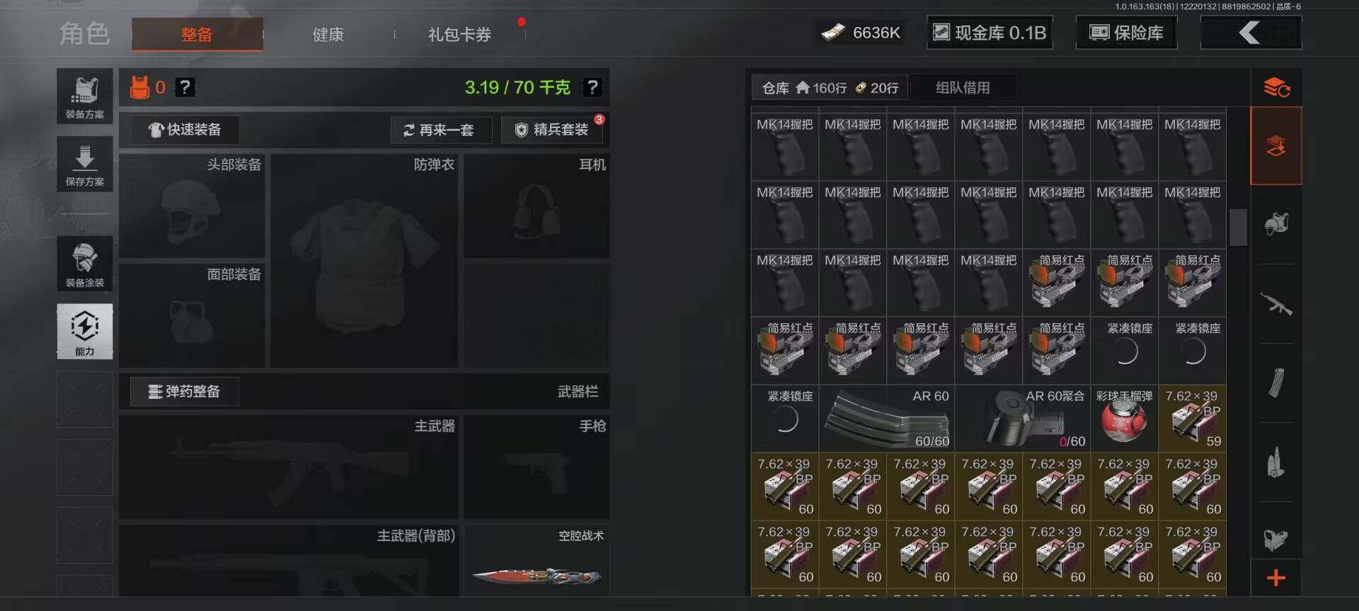 【AQQH112】段位:暗区传说/仓库价值(百万):182/空腔战术/野战折刀/脉冲马克西姆/告丧夜曲AUG/旧王圣谕VSS