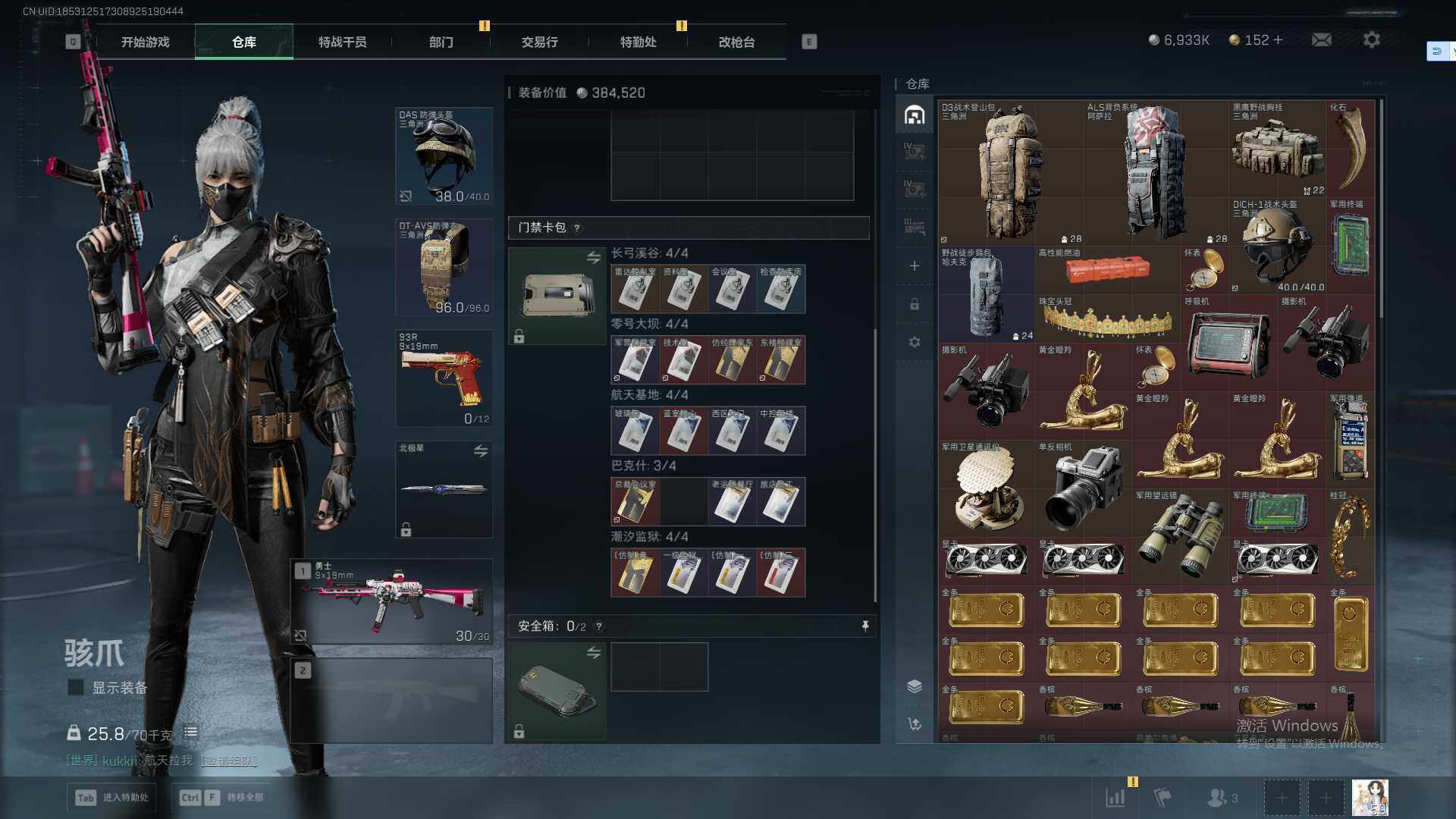 【SJ6121】总资产(M):75M/哈夫币(K):6933K/哈夫币(K):6933K/传说枪皮数:16/全面战场等级:12_段位:列兵/烽火地带等级:59_段位:黄金/骇爪-水墨云图/红狼-电锯惊魂/近战-北极星/近战-黑鹰/M4A1突击步枪-阿米娅/M16A4突击步枪-狩猎时刻/SCAR-H战斗步枪-水墨云图/SCAR-H战斗步枪-启航/G3战斗步枪-狩猎时刻/CAR-15突击步枪-阿米娅/腾龙突击步枪-捞点薯条/K437突击步枪-北极星/KC17突击步枪-电锯惊魂/Vector冲锋枪-狩