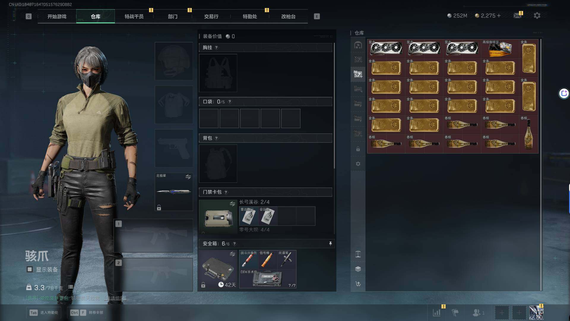 总资产(M):407M/哈夫币(K):252825K/哈夫币(K):252825K/传说枪皮数:25