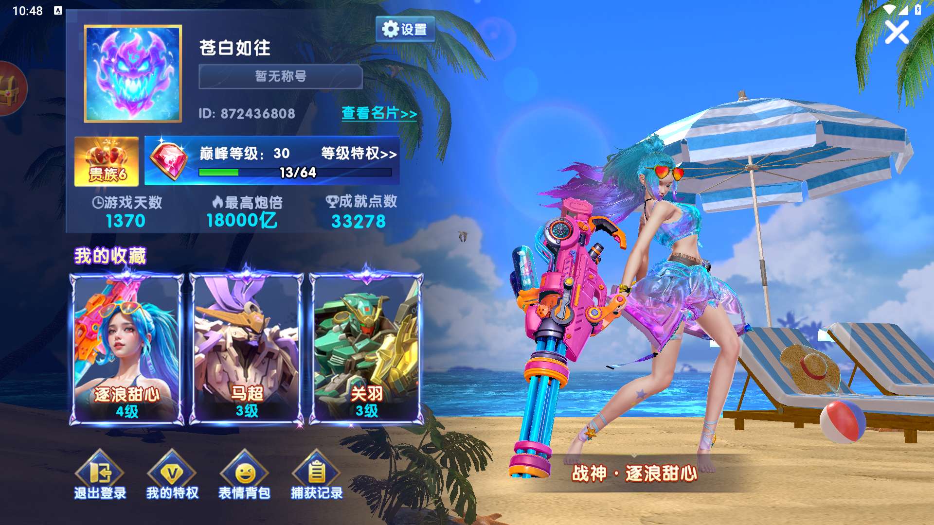 捕鱼大作战小米 v6 1665 万亿,炮台 190,巅峰 30,带号出,破产号回 200