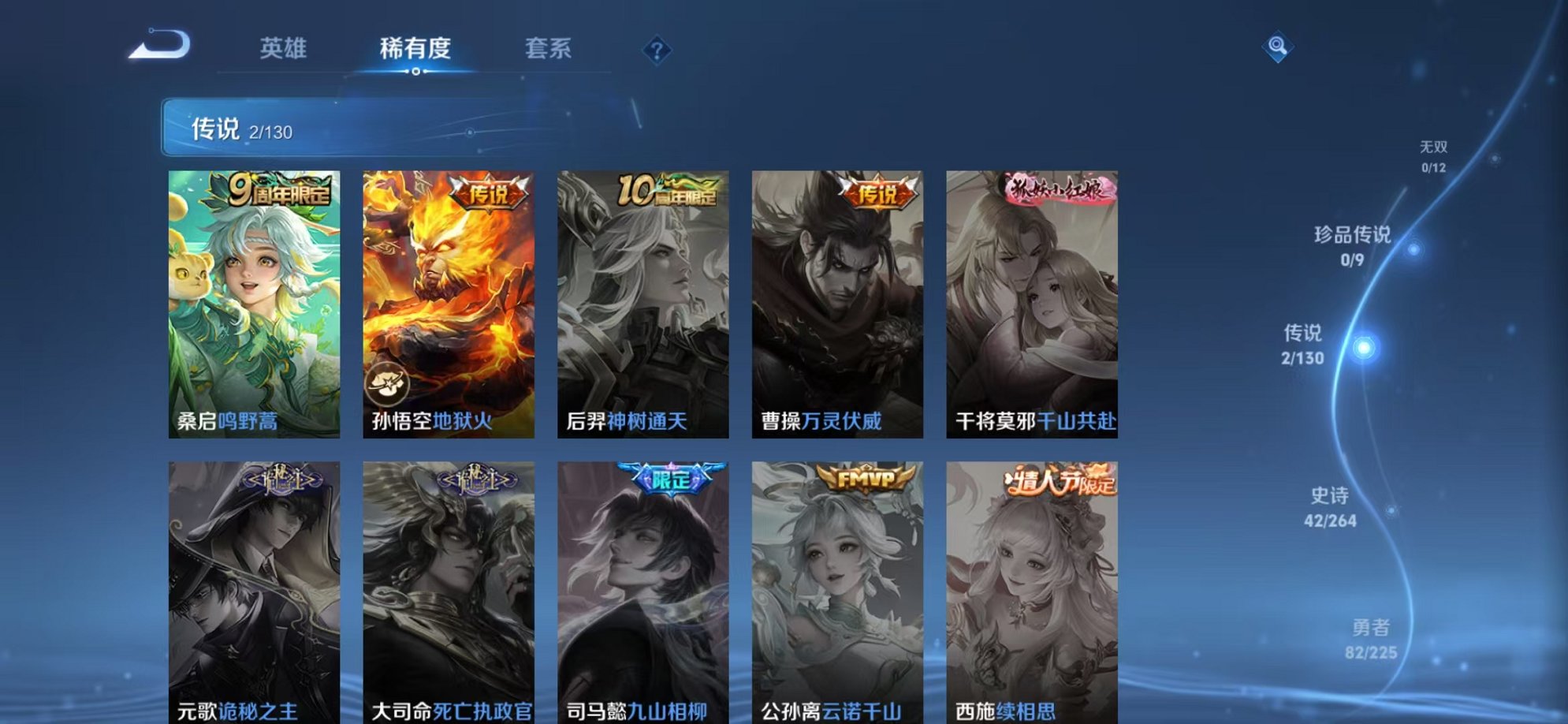 皮肤168 英雄126 永恒钻石 荣耀典藏1 传说2 其他皮肤63-