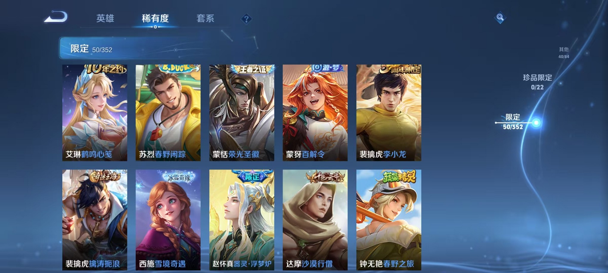 皮肤180 英雄125 无双王者 传说4 其他皮肤62-
