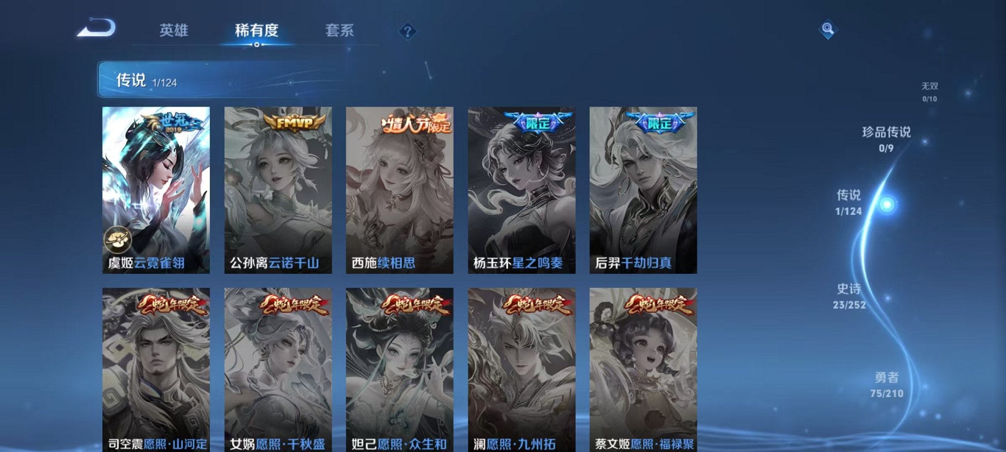 皮肤165 英雄119 至尊星耀 荣耀典藏1 传说1 其他皮肤54-