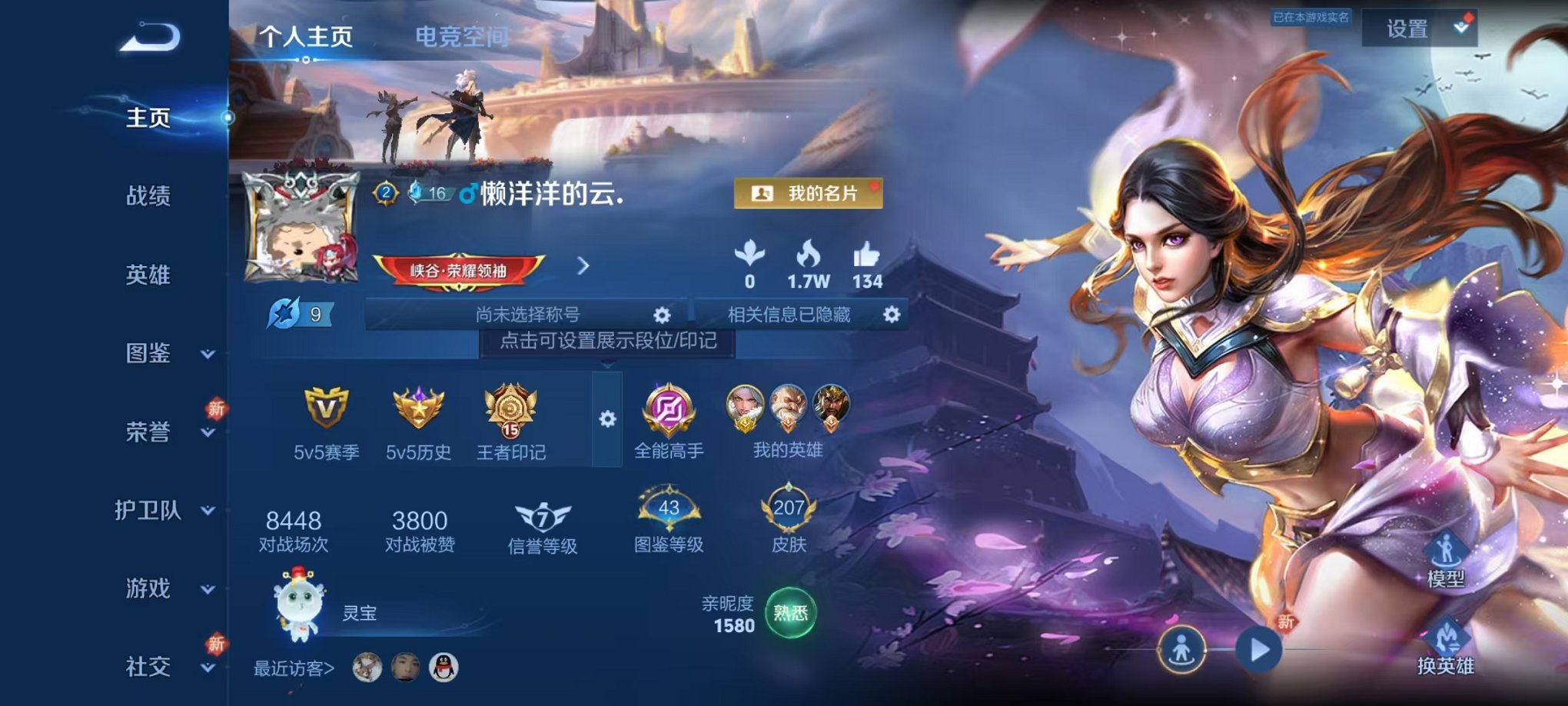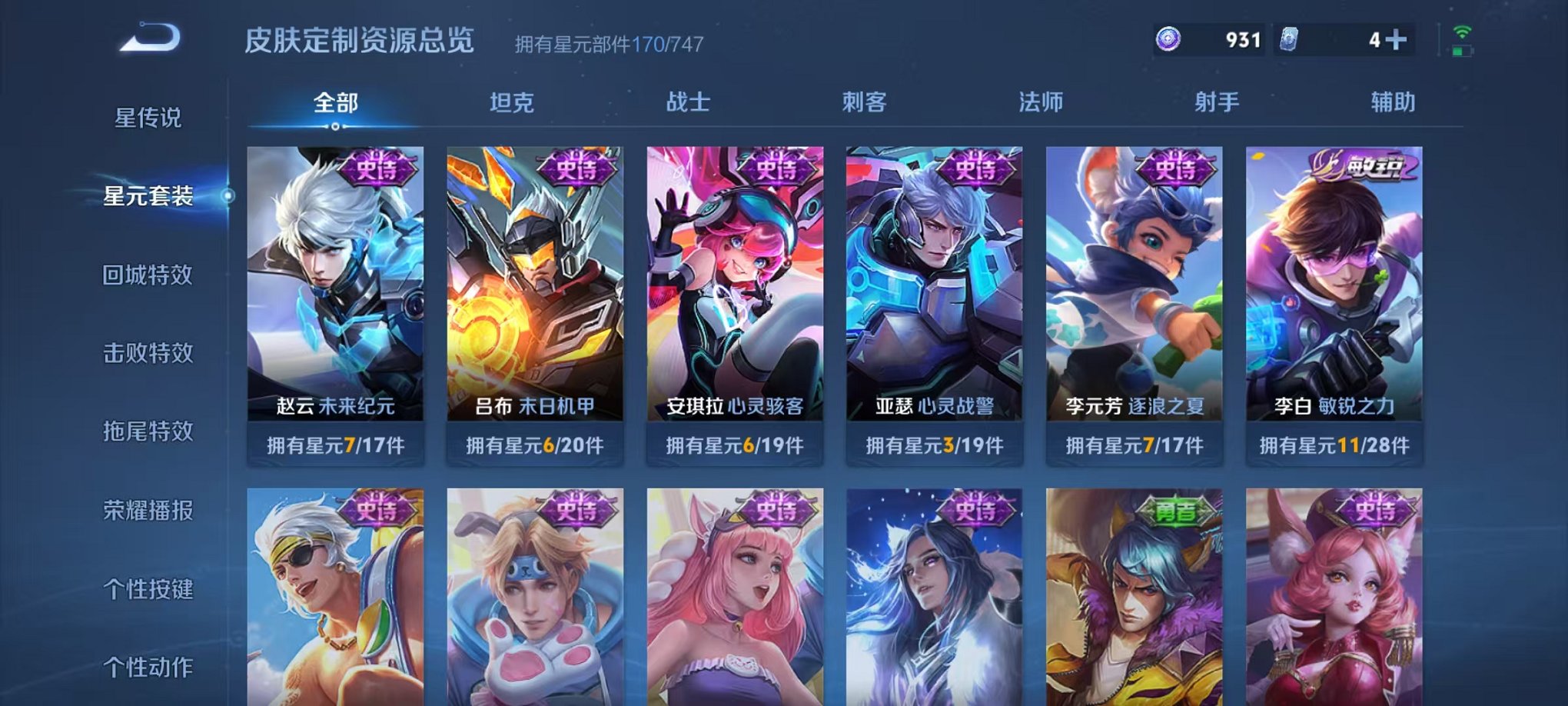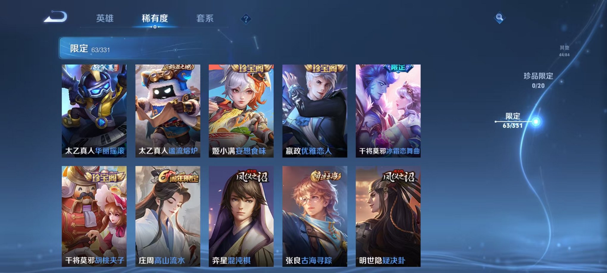 皮肤207 英雄124 至尊星耀 其他皮肤88-