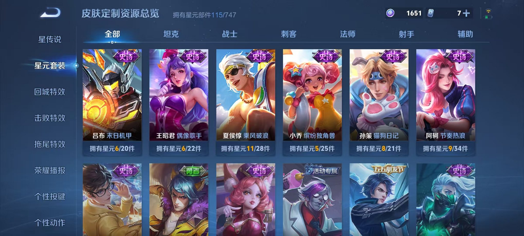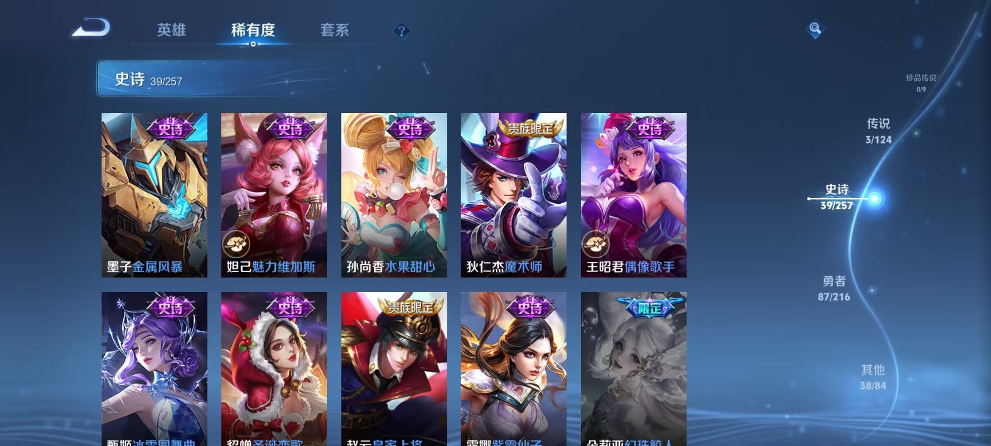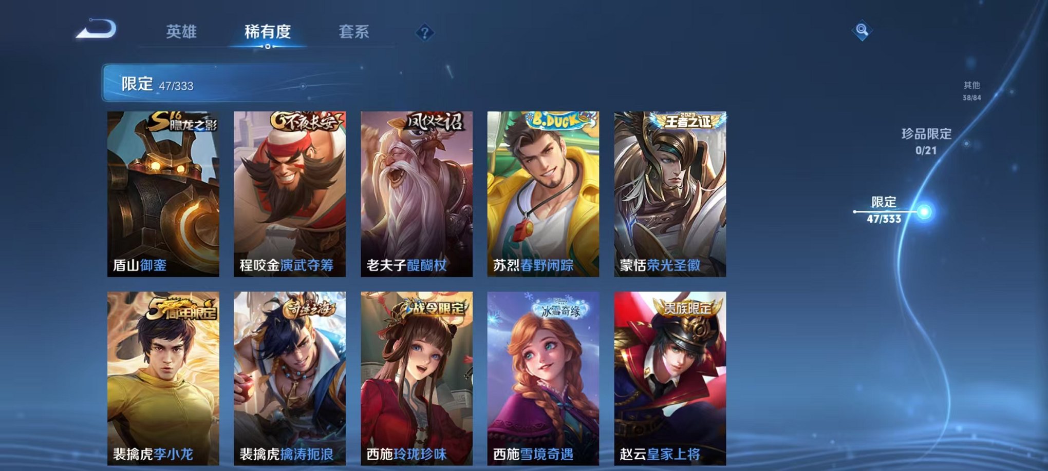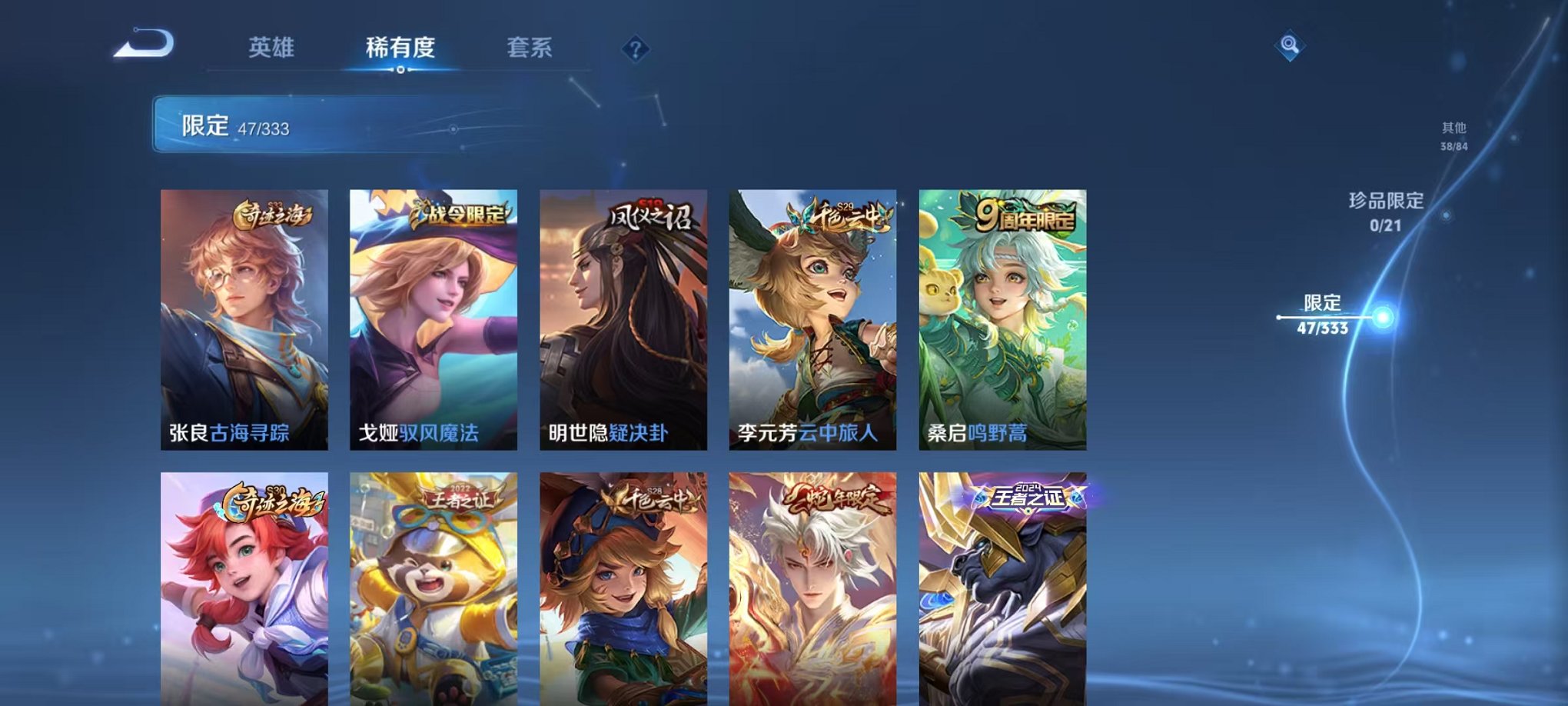 皮肤167 英雄123 至尊星耀 传说3 其他皮肤61-
