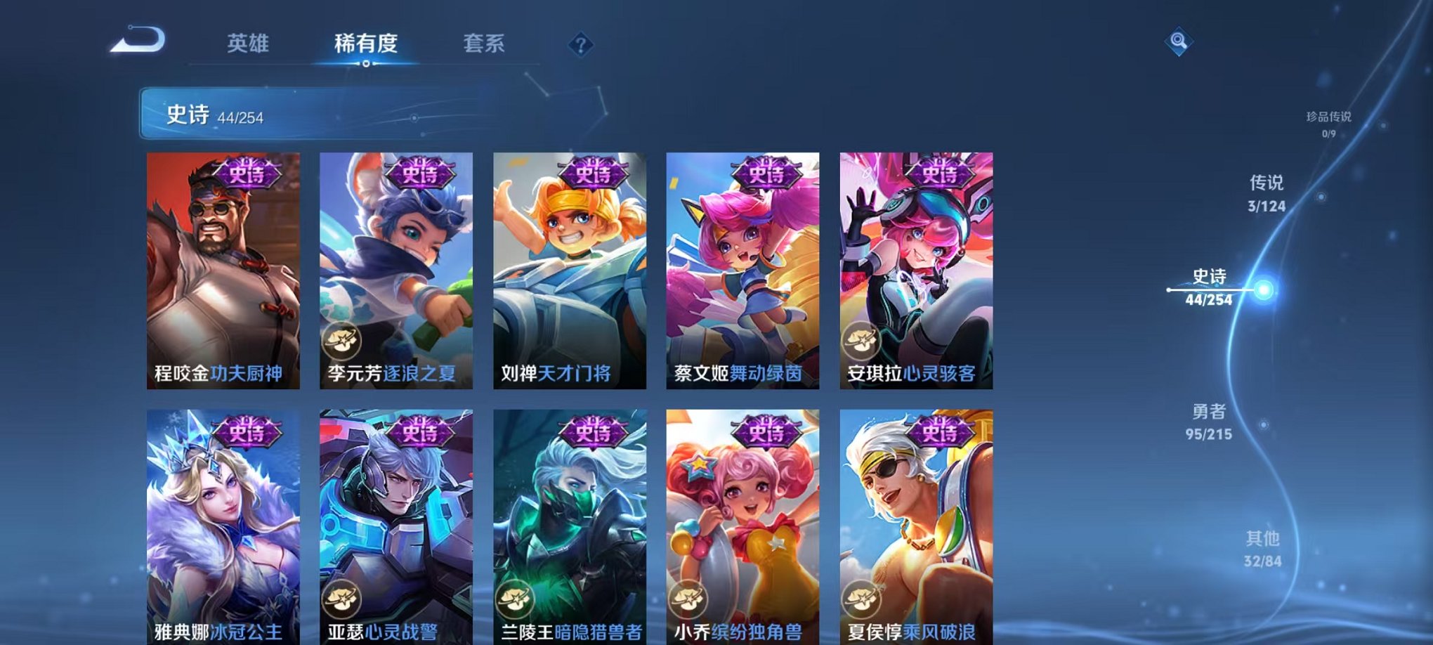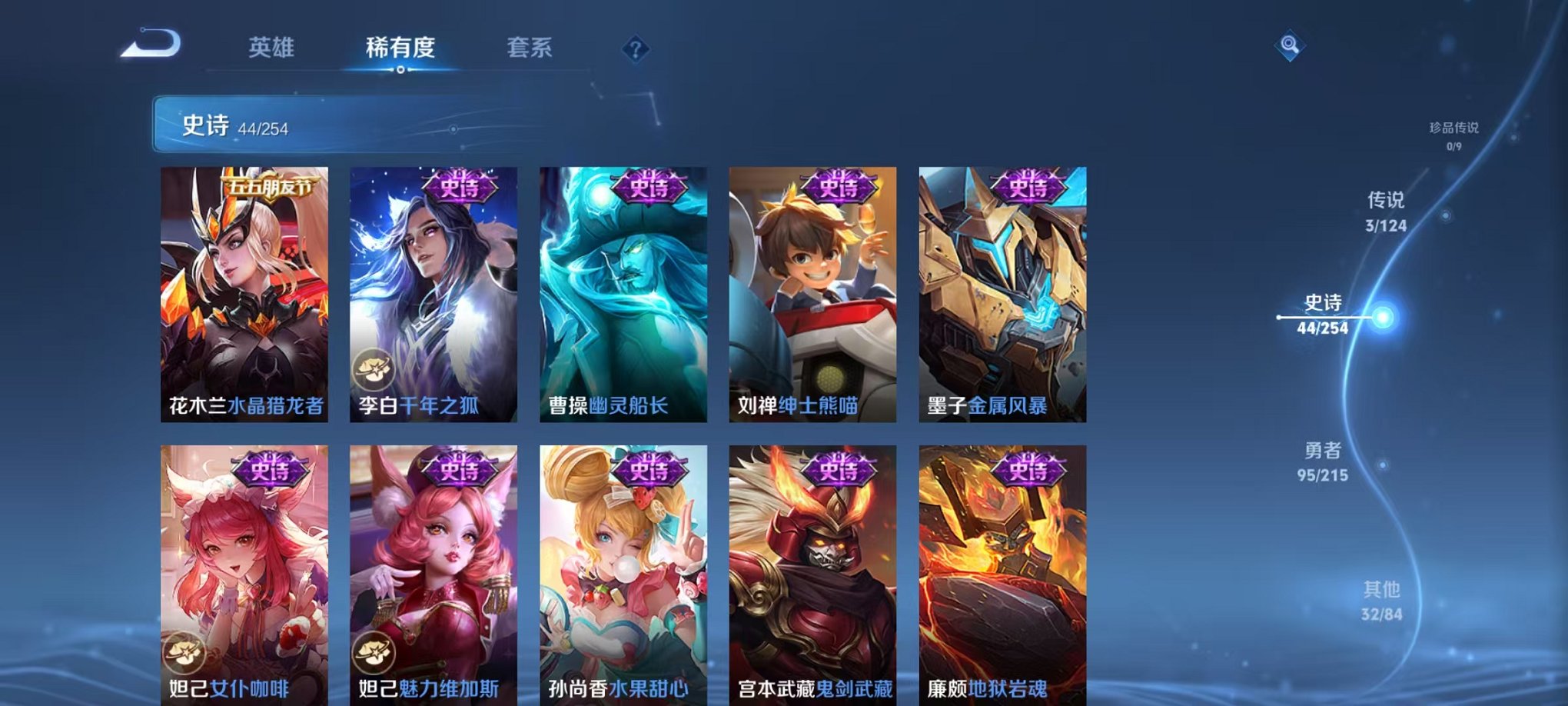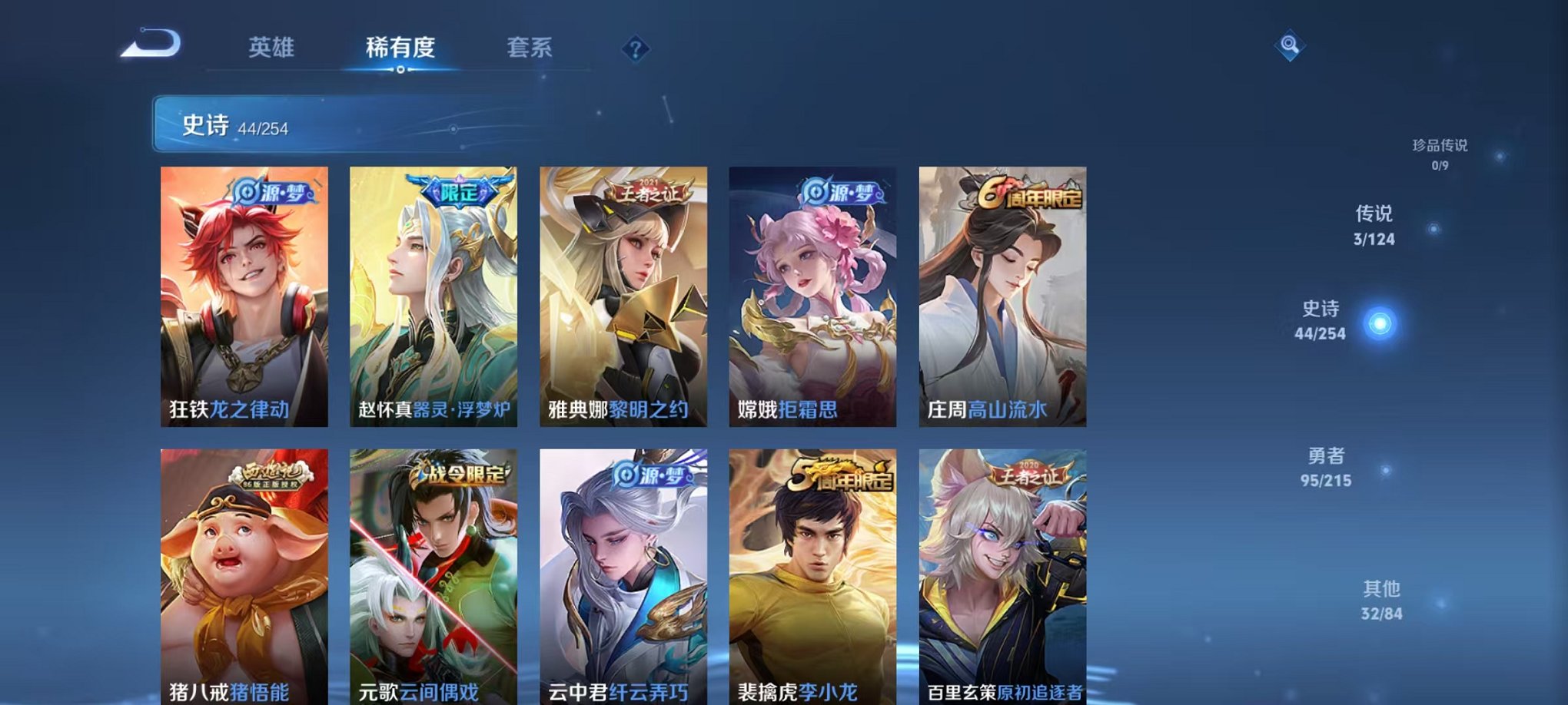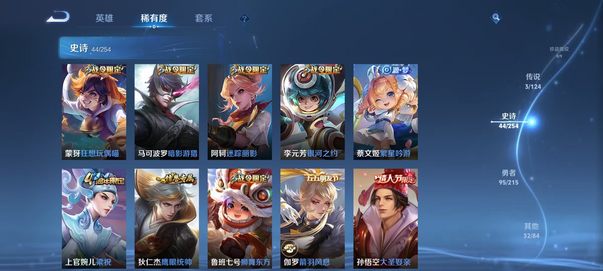 皮肤174 英雄123 至尊星耀 传说3 其他皮肤73-