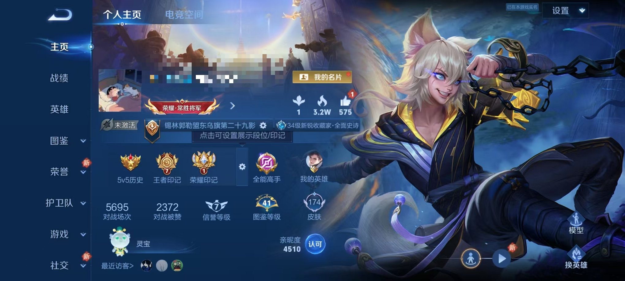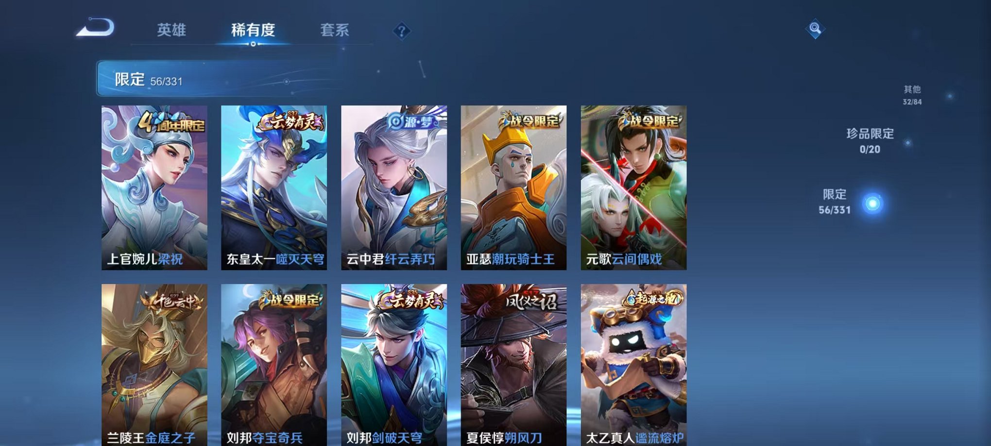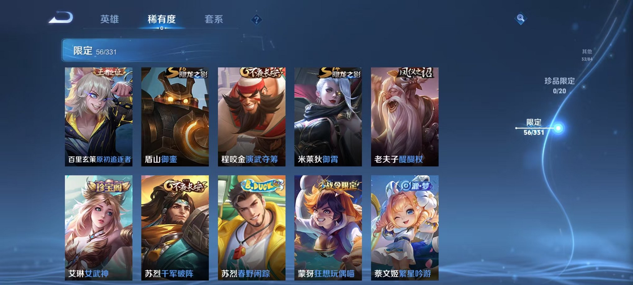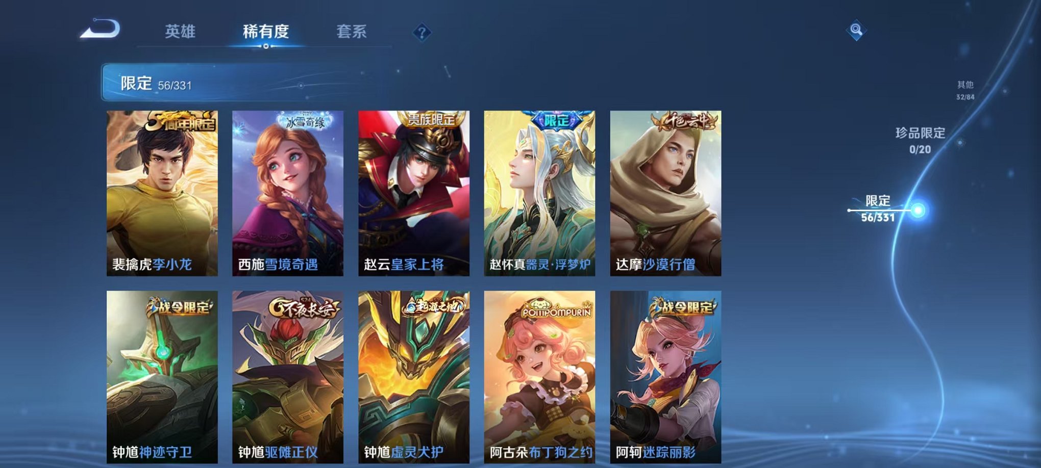 皮肤174 英雄123 至尊星耀 传说3 其他皮肤73-