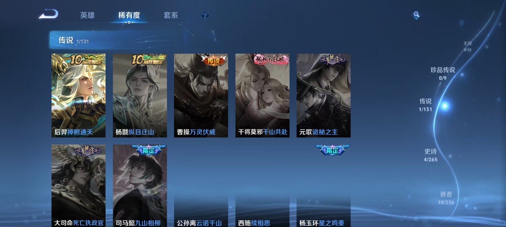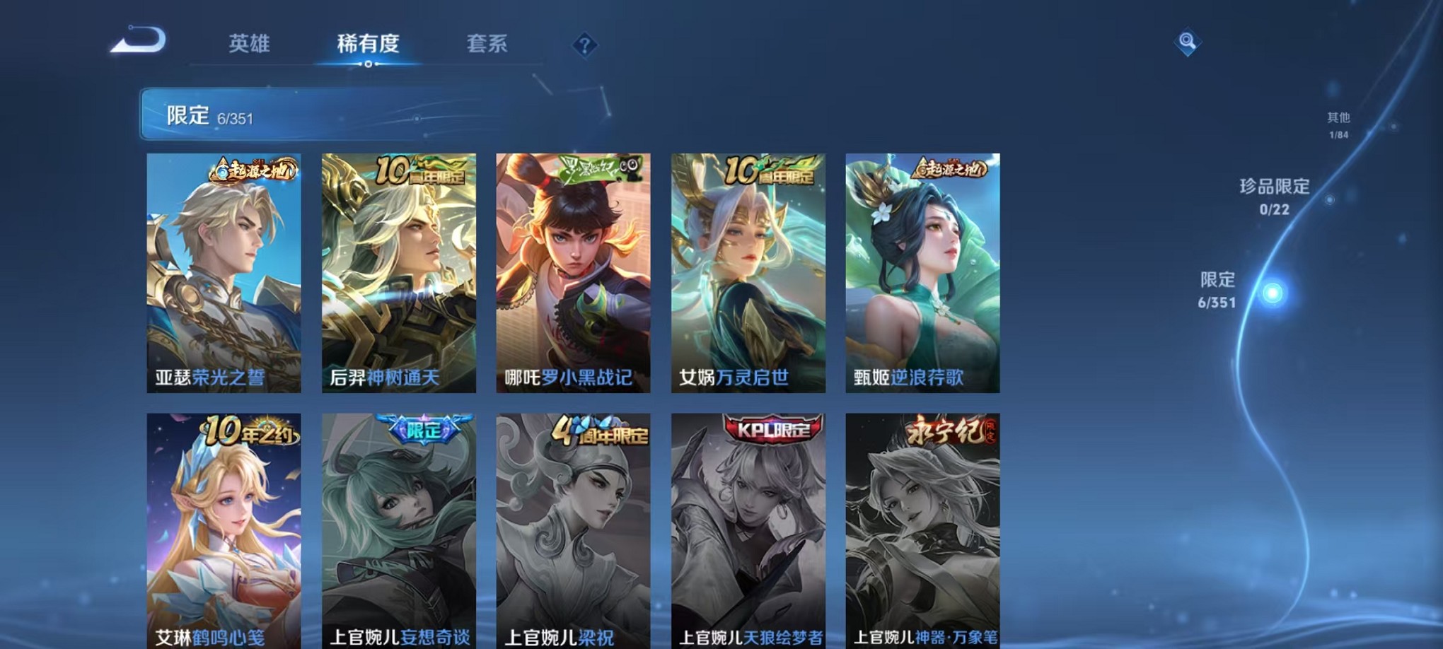 皮肤17 英雄45 尊贵铂金 荣耀典藏1 传说1 其他皮肤4-