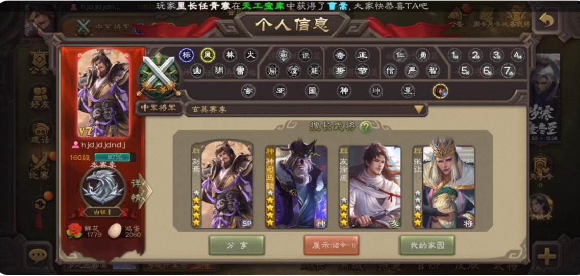 随机3~5史诗账号内最少三个史诗包含一个谋将随机带含新版武将有几率大将军刘焉等旧强力武将