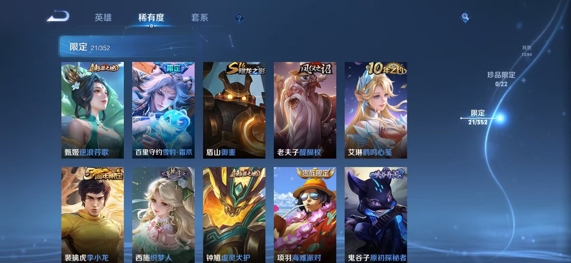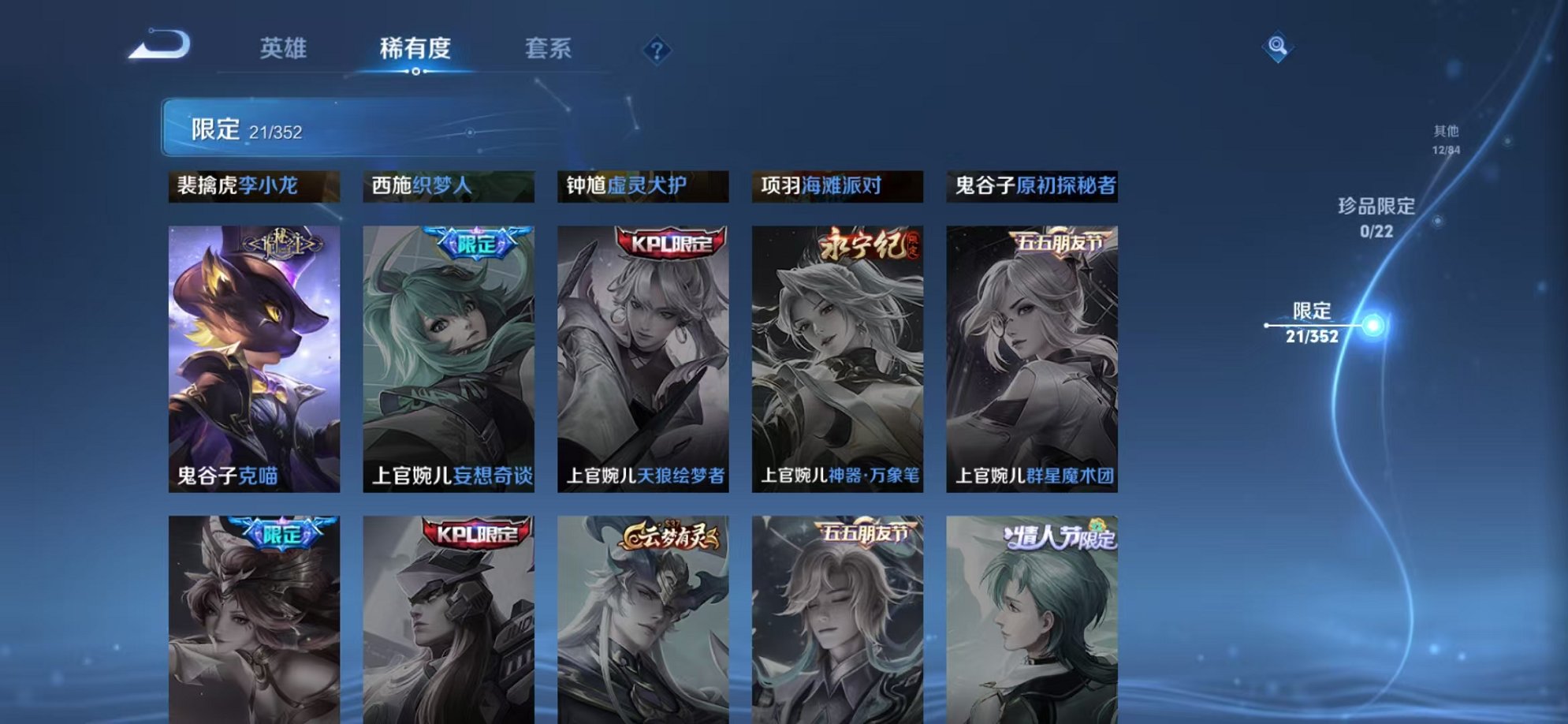 皮肤59 英雄99 尊贵铂金 传说1 其他皮肤24-