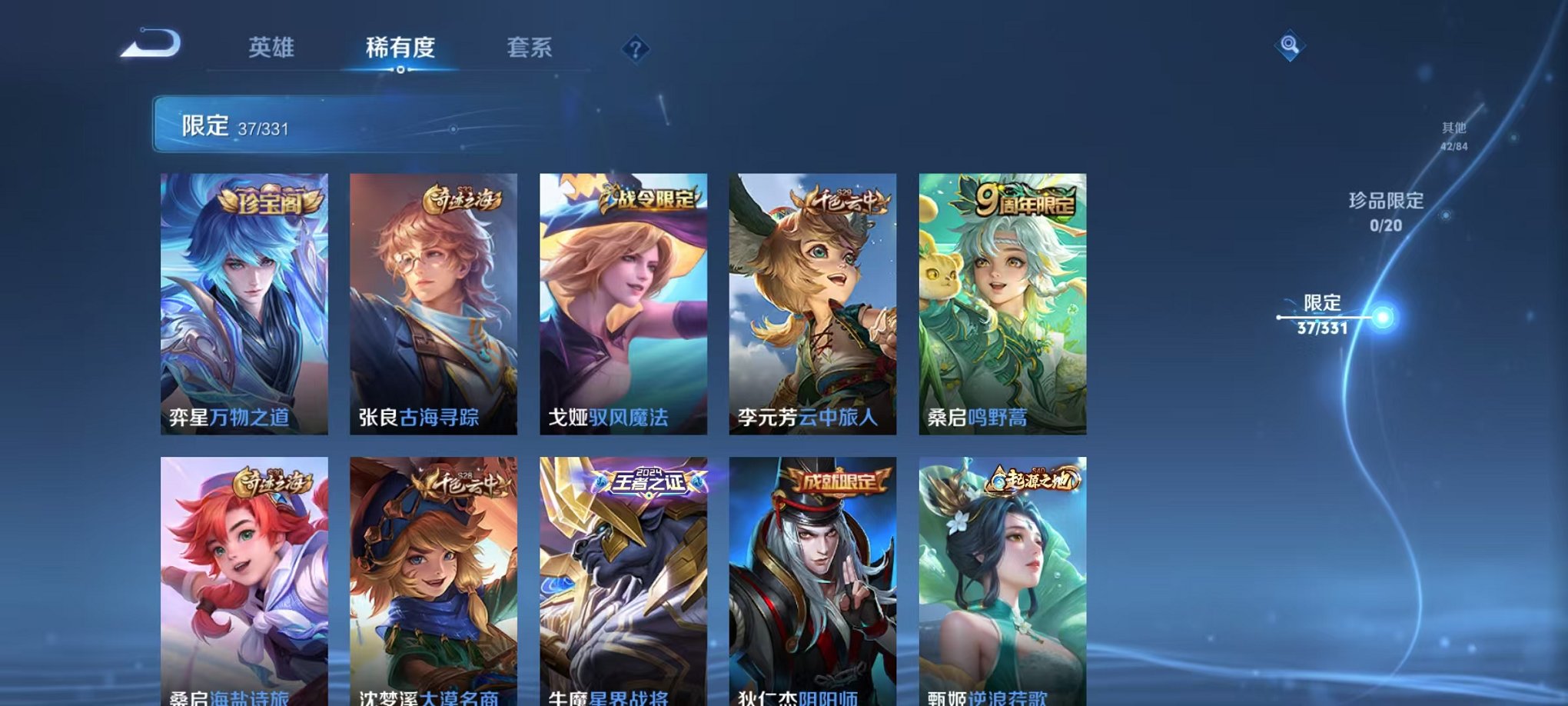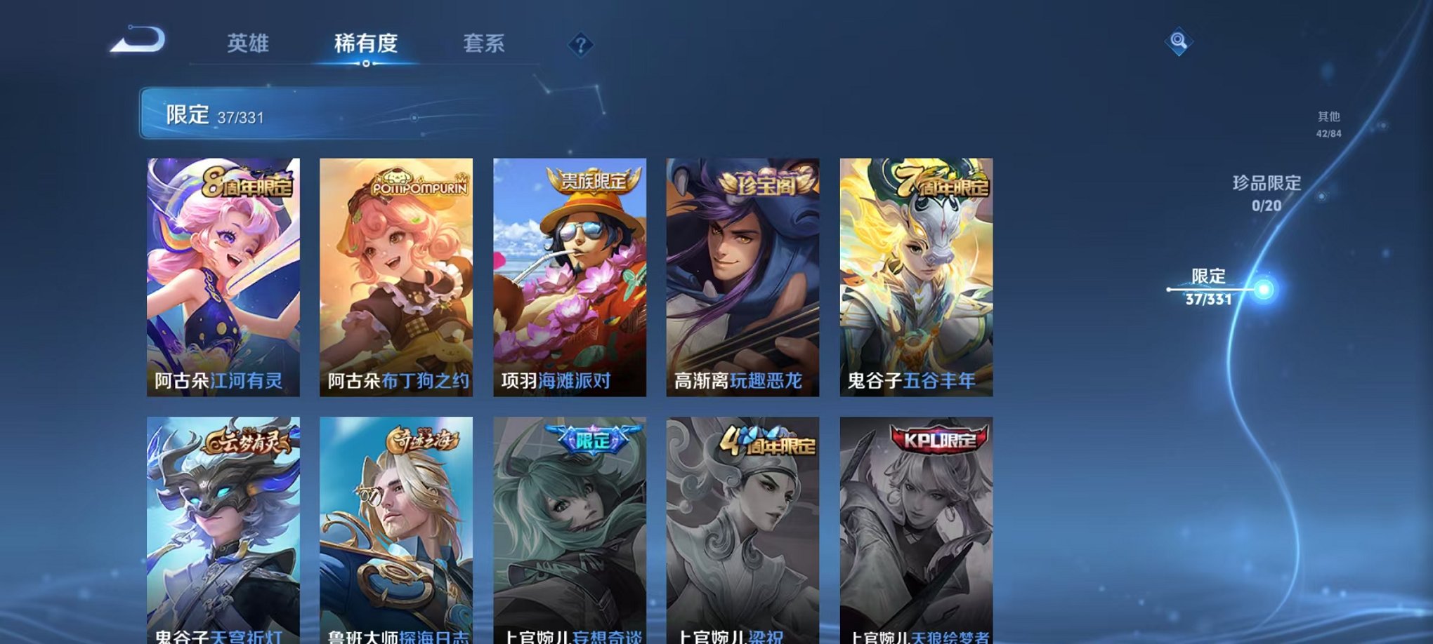 皮肤156 英雄121 至尊星耀 传说2 其他皮肤48-