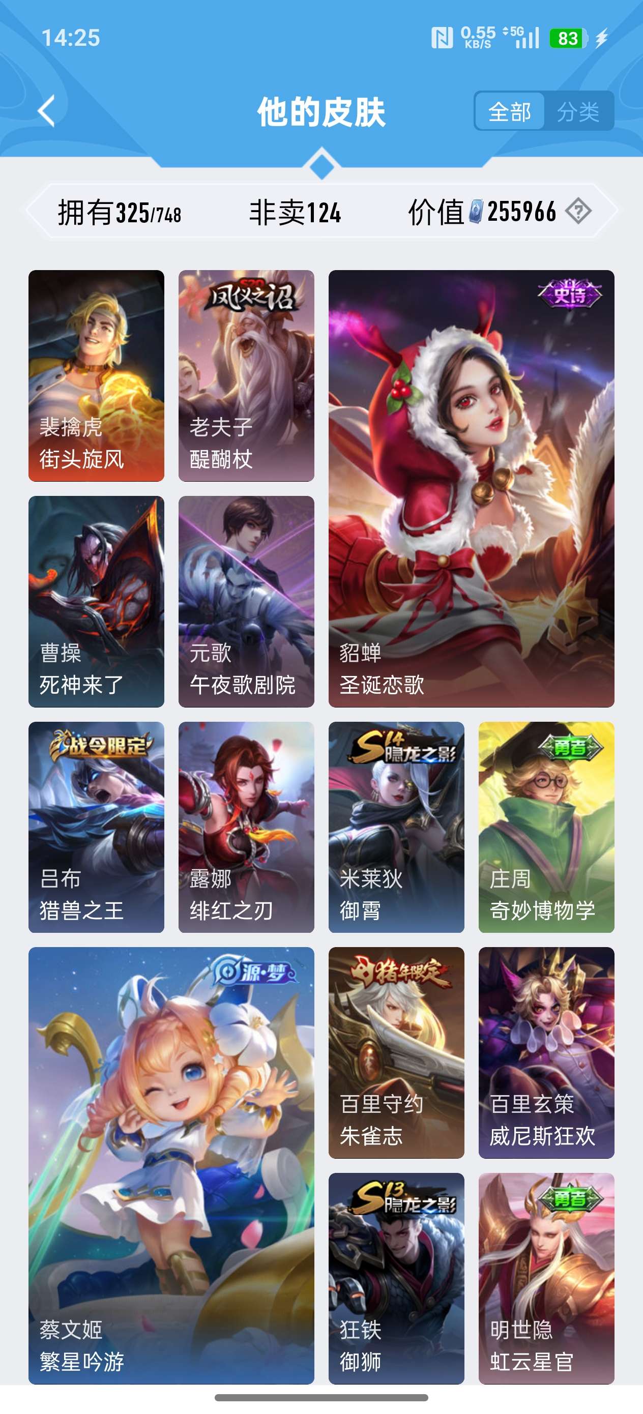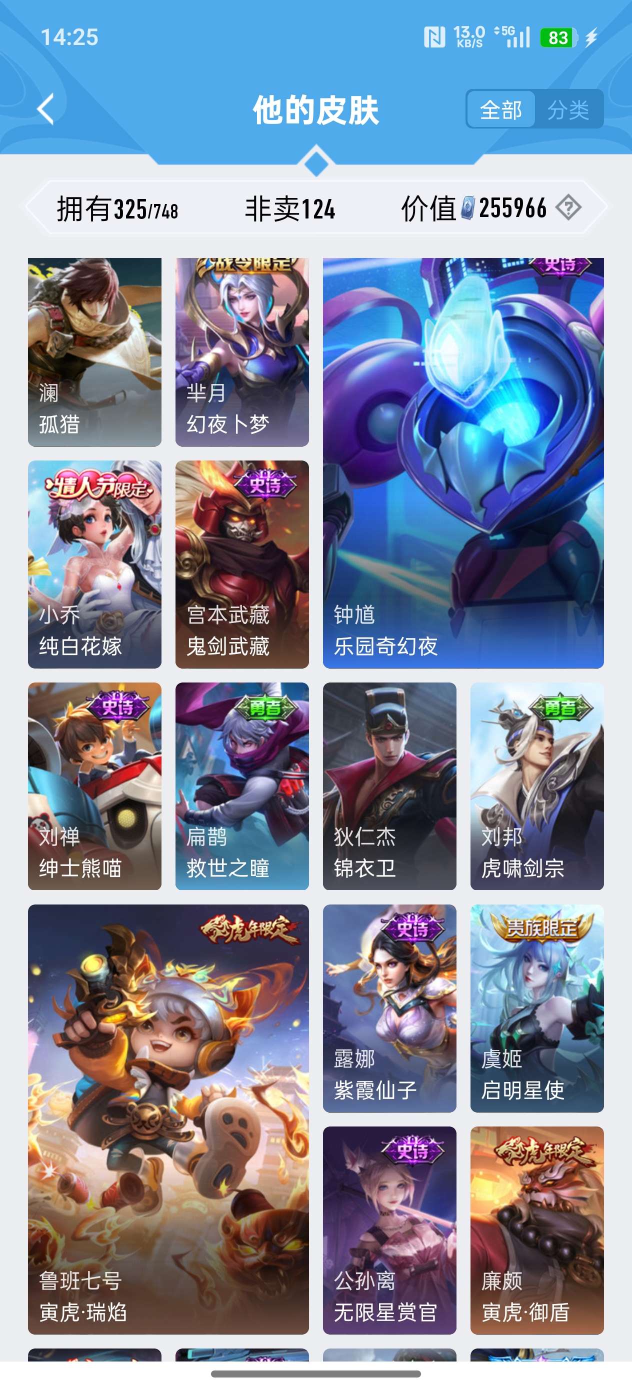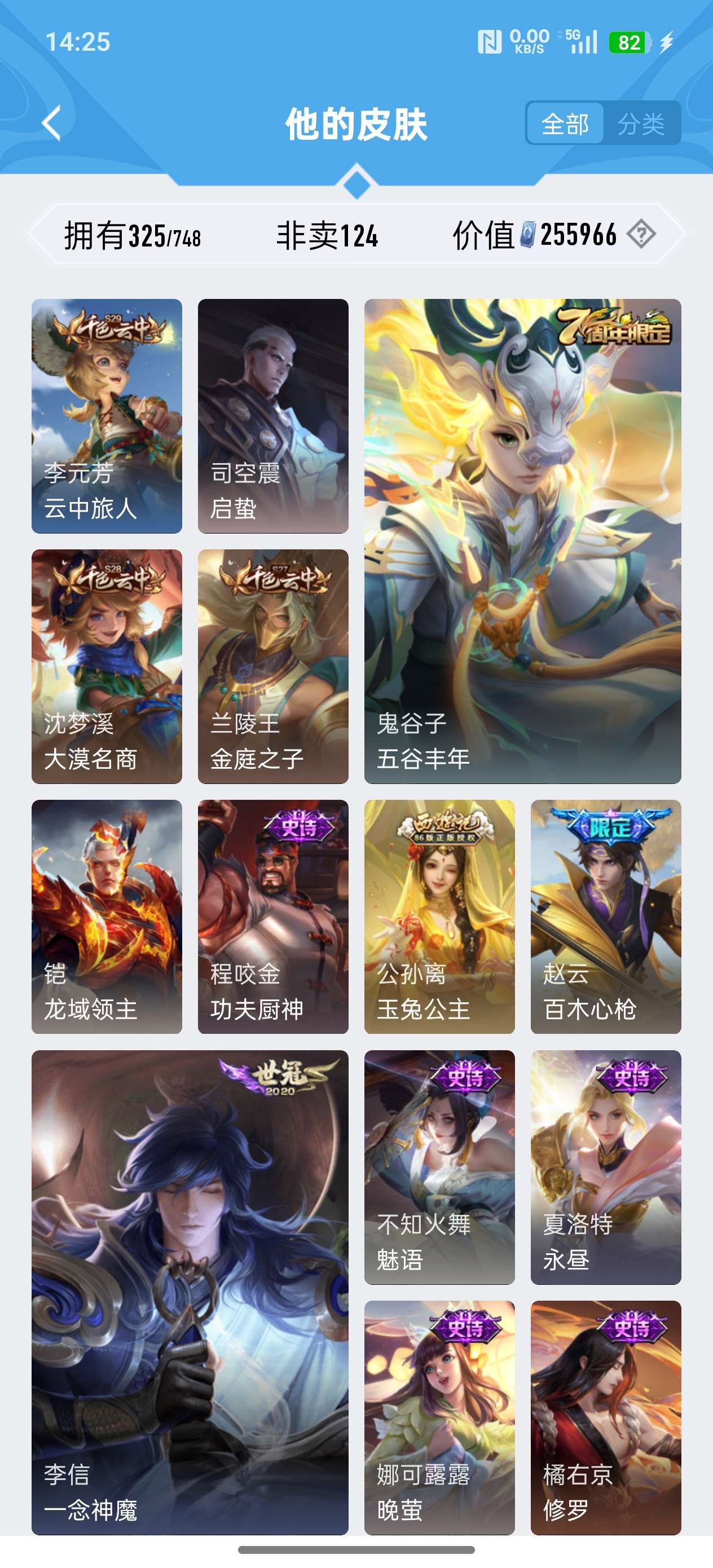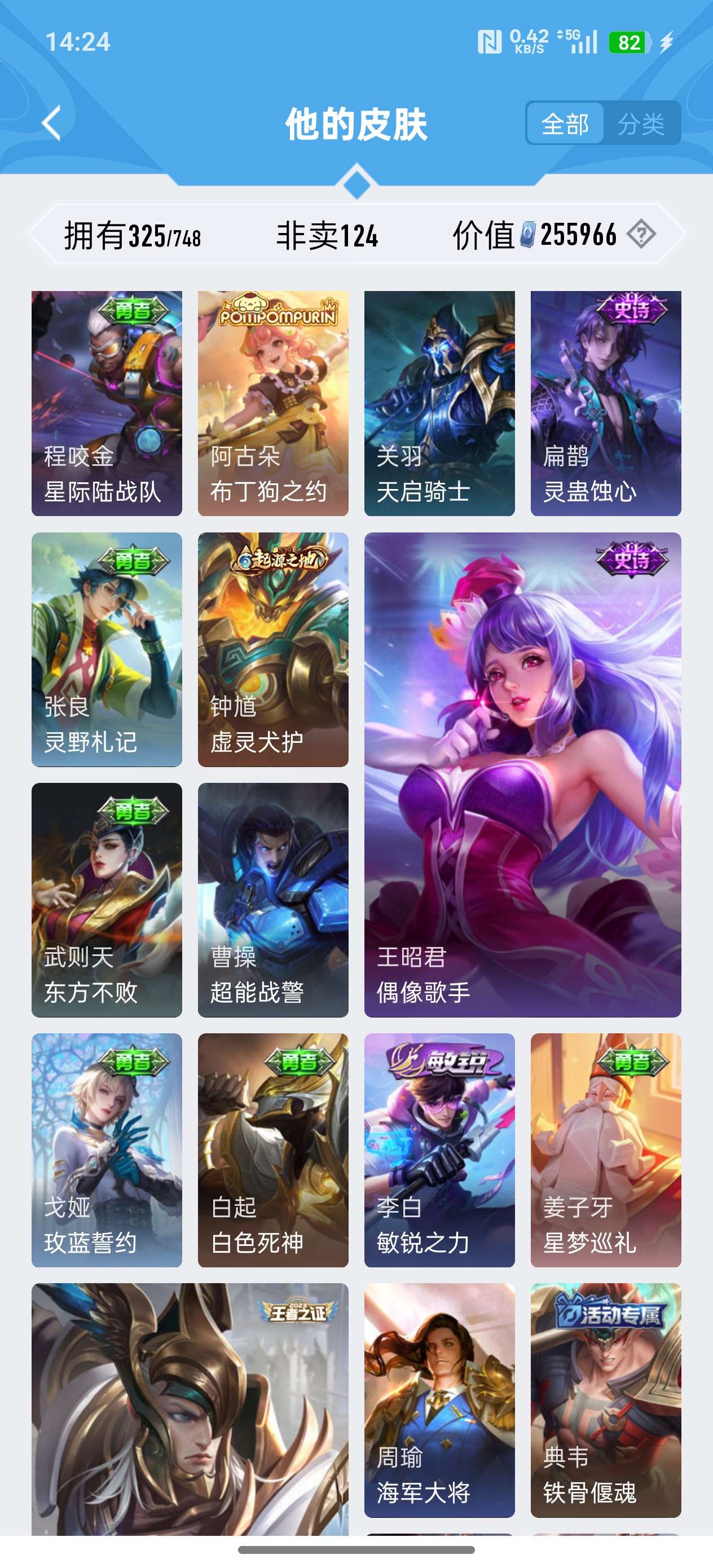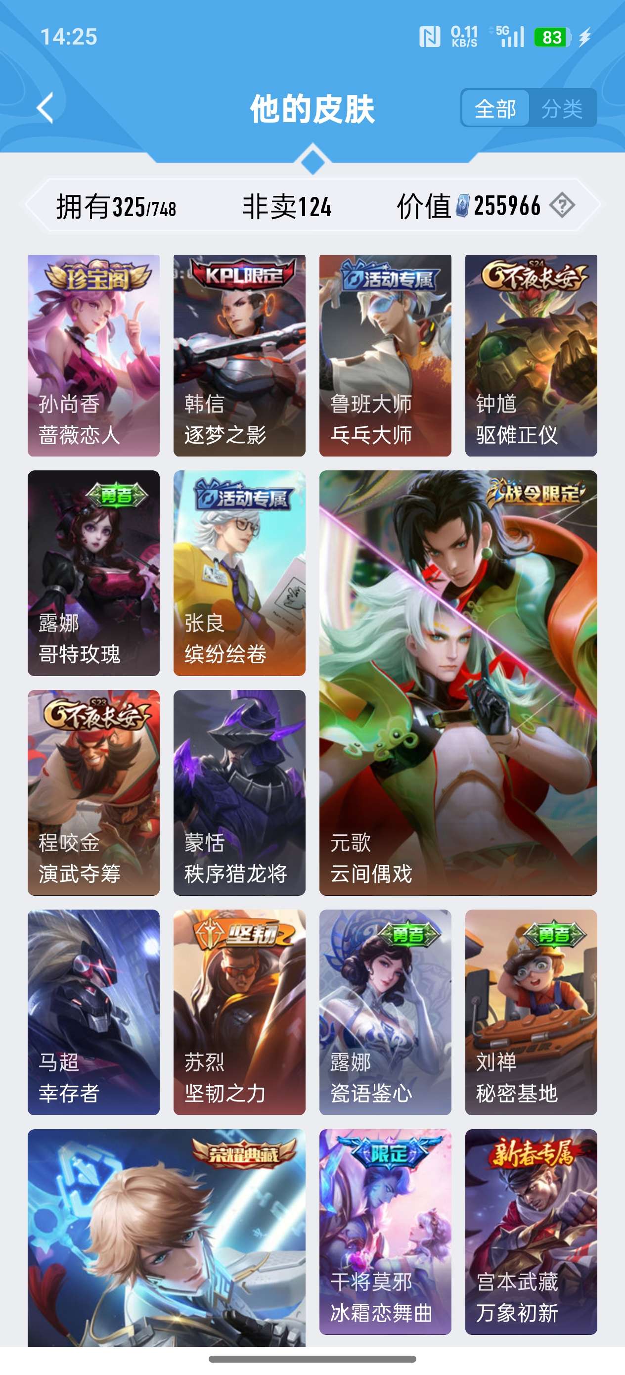 苹果QQ/非凡王者/325皮肤/126英雄/2典藏/0珍品无双/0无双/0珍品传说/16传说/99史