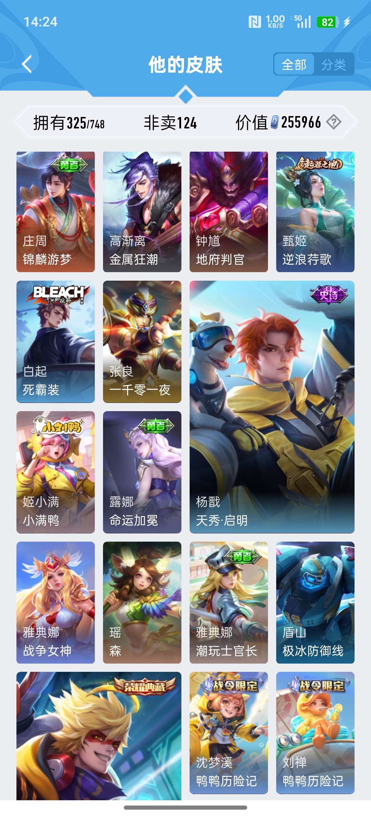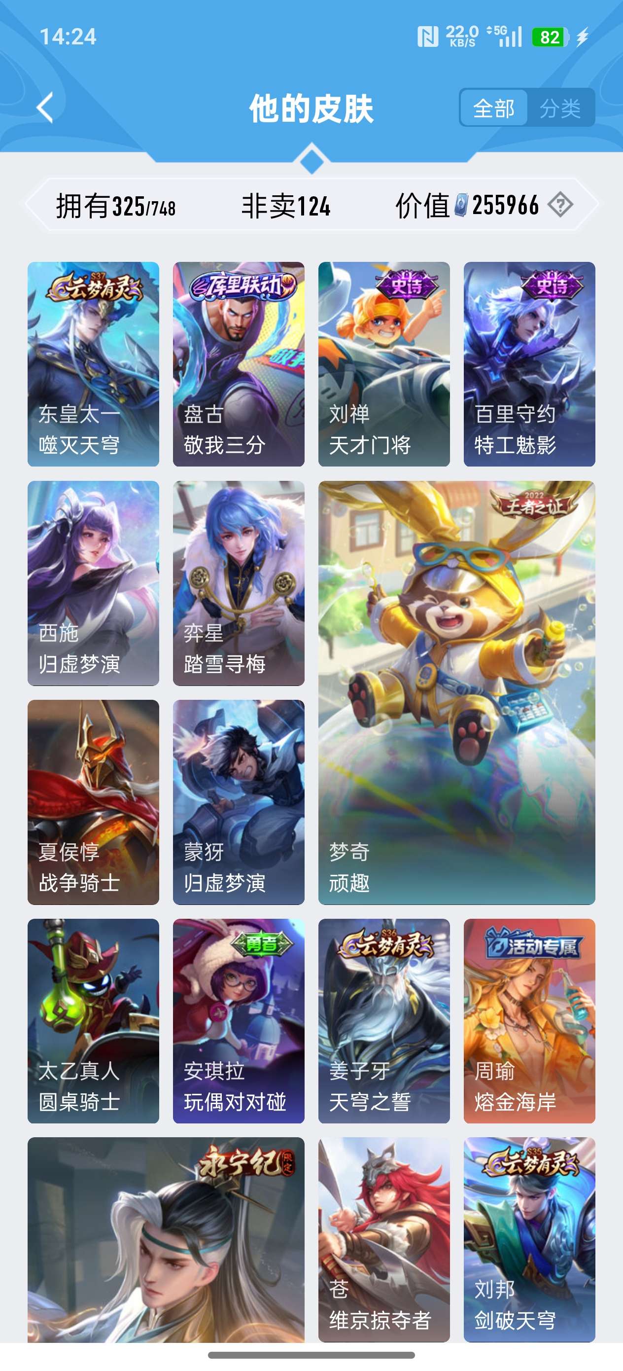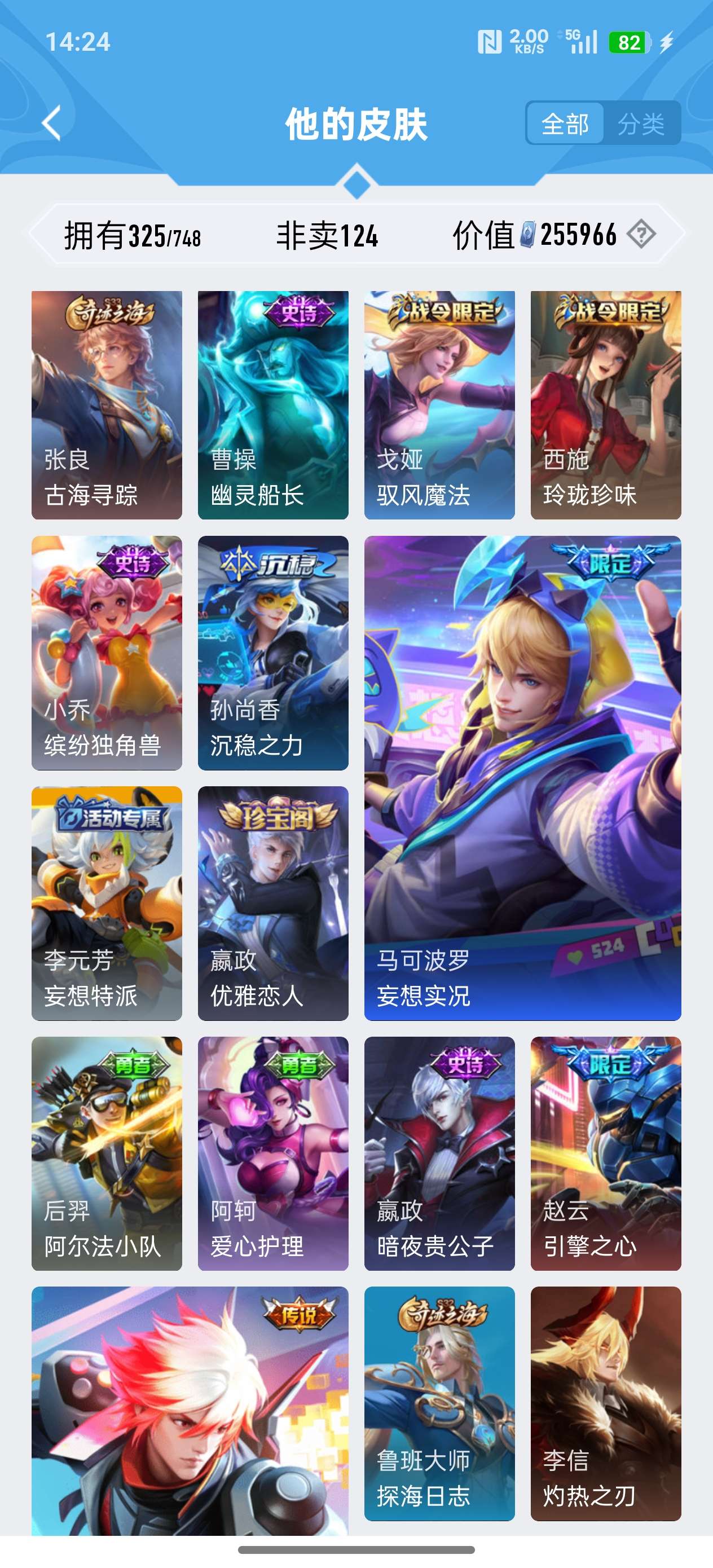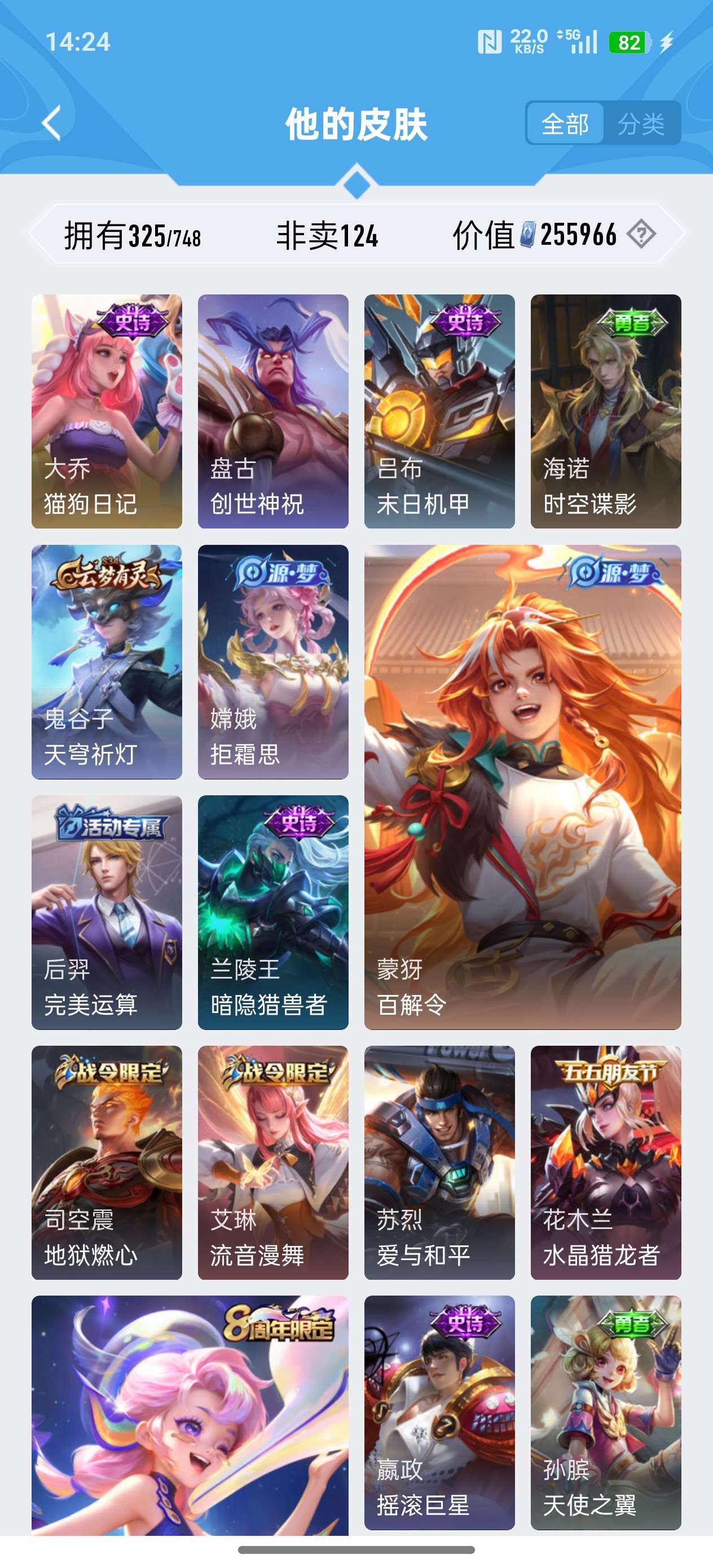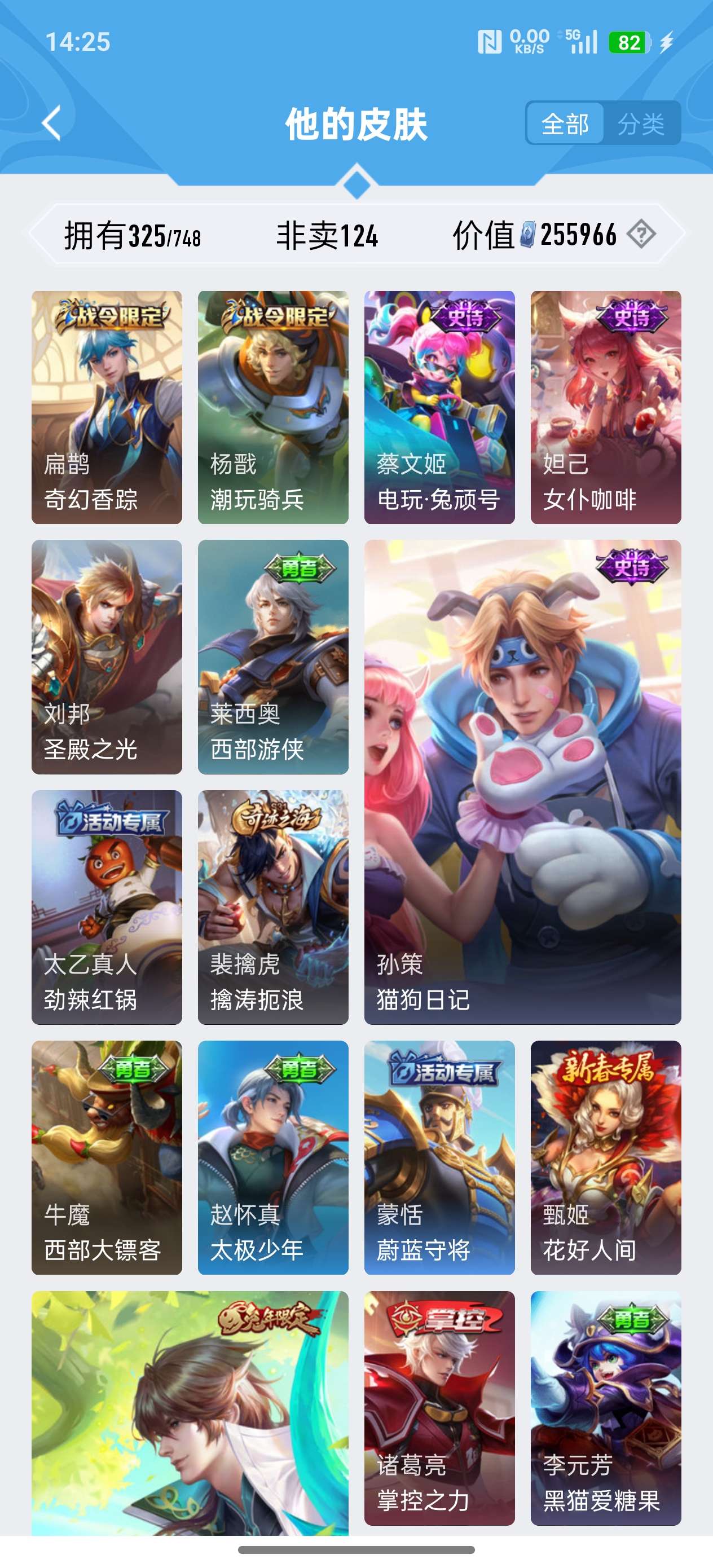 苹果QQ/非凡王者/325皮肤/126英雄/2典藏/0珍品无双/0无双/0珍品传说/16传说/99史