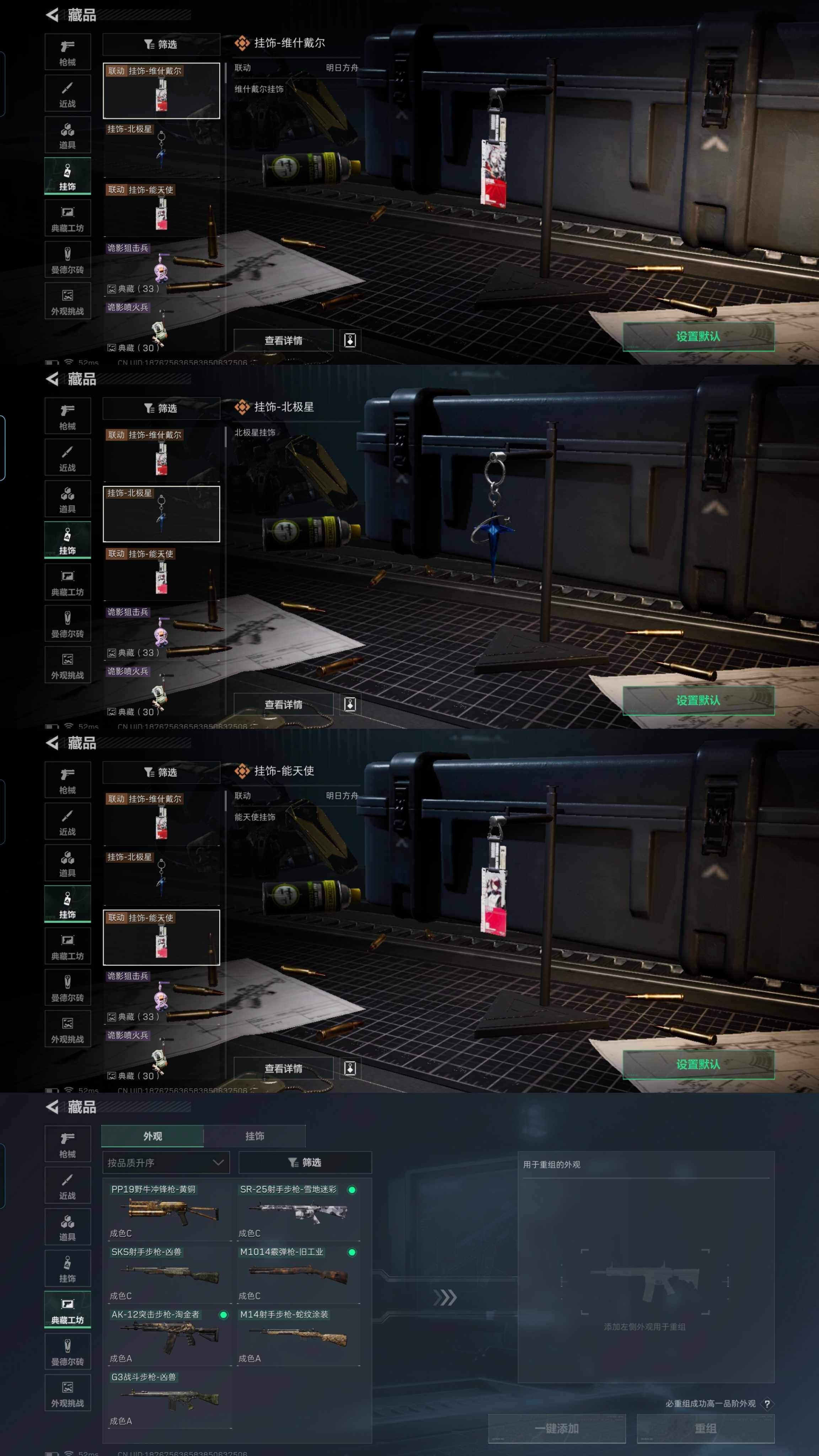 u59,2把刀北极星,皮肤午夜邮差无题夜鹰不破,总资产207.2M,哈夫币50946K,17橙皮枪,特勤快满,3x2,3金挂饰