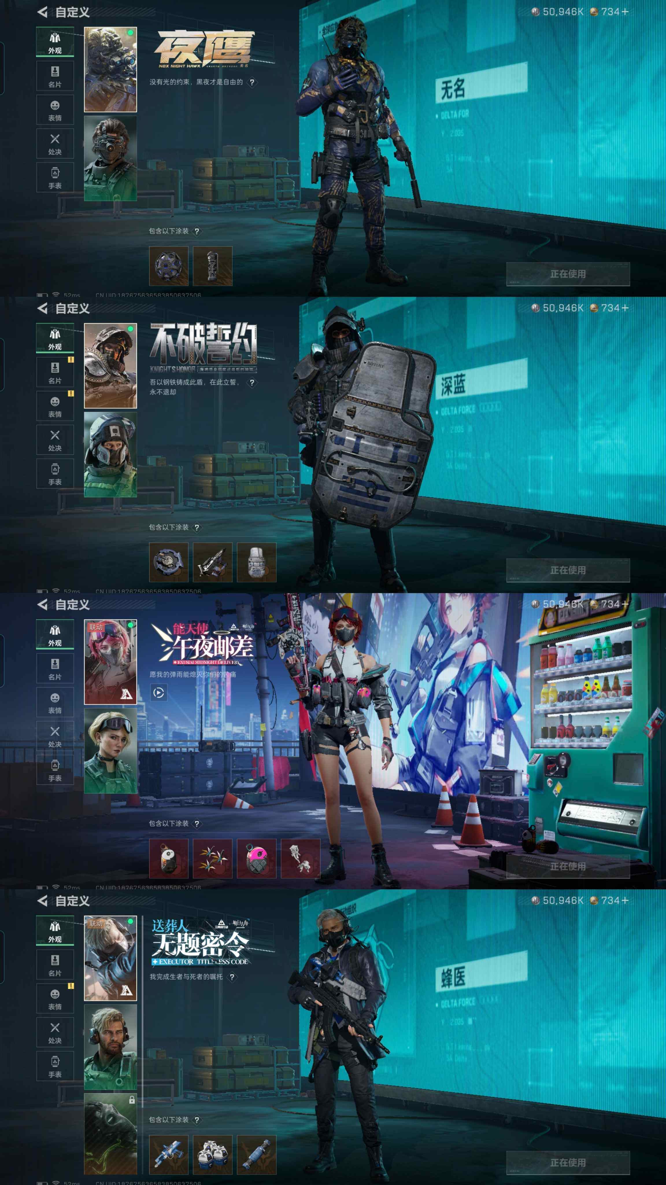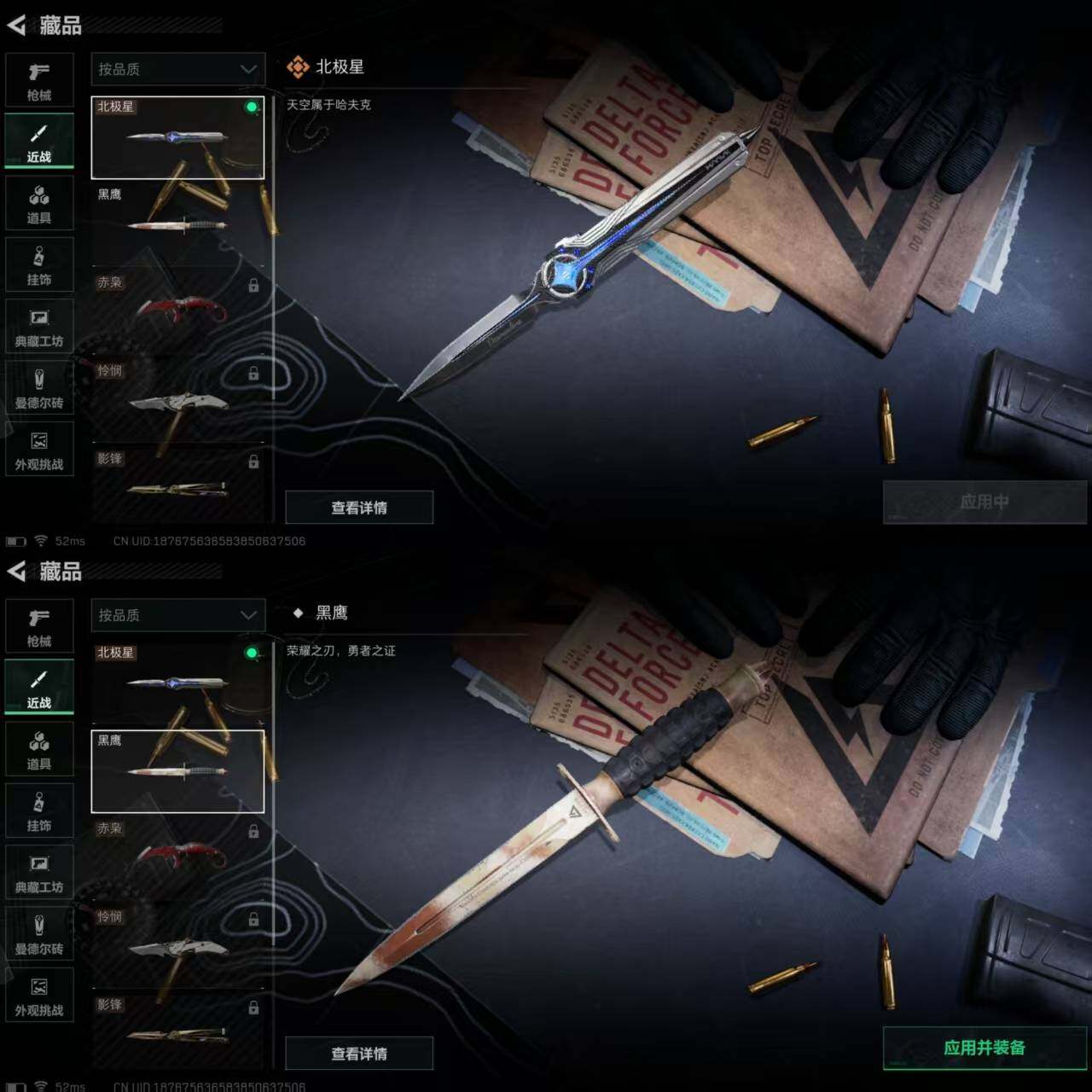 u59,2把刀北极星,皮肤午夜邮差无题夜鹰不破,总资产207.2M,哈夫币50