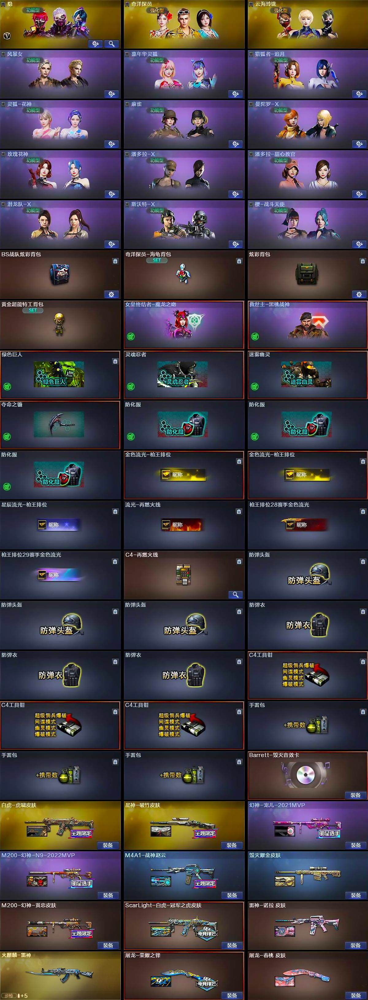 【热门武器】:G36C-幻影,M200-幻神,凤吟之魄,柯尔特-冠军之特,M4A1-黑骑士,加特林-炼狱,羊驼玩偶*2,沙鹰-修罗*5