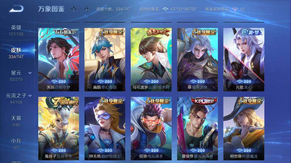 安卓Q-V8-334皮肤-1典藏皮肤-10传说-98史诗-1星传说-5按键-2