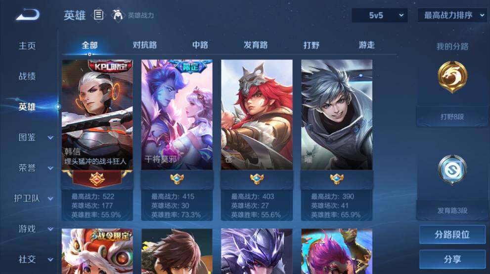 安卓Q-V8-193皮肤-1典藏皮肤-1典藏英雄-11传说-38史诗-1星传说-4按键