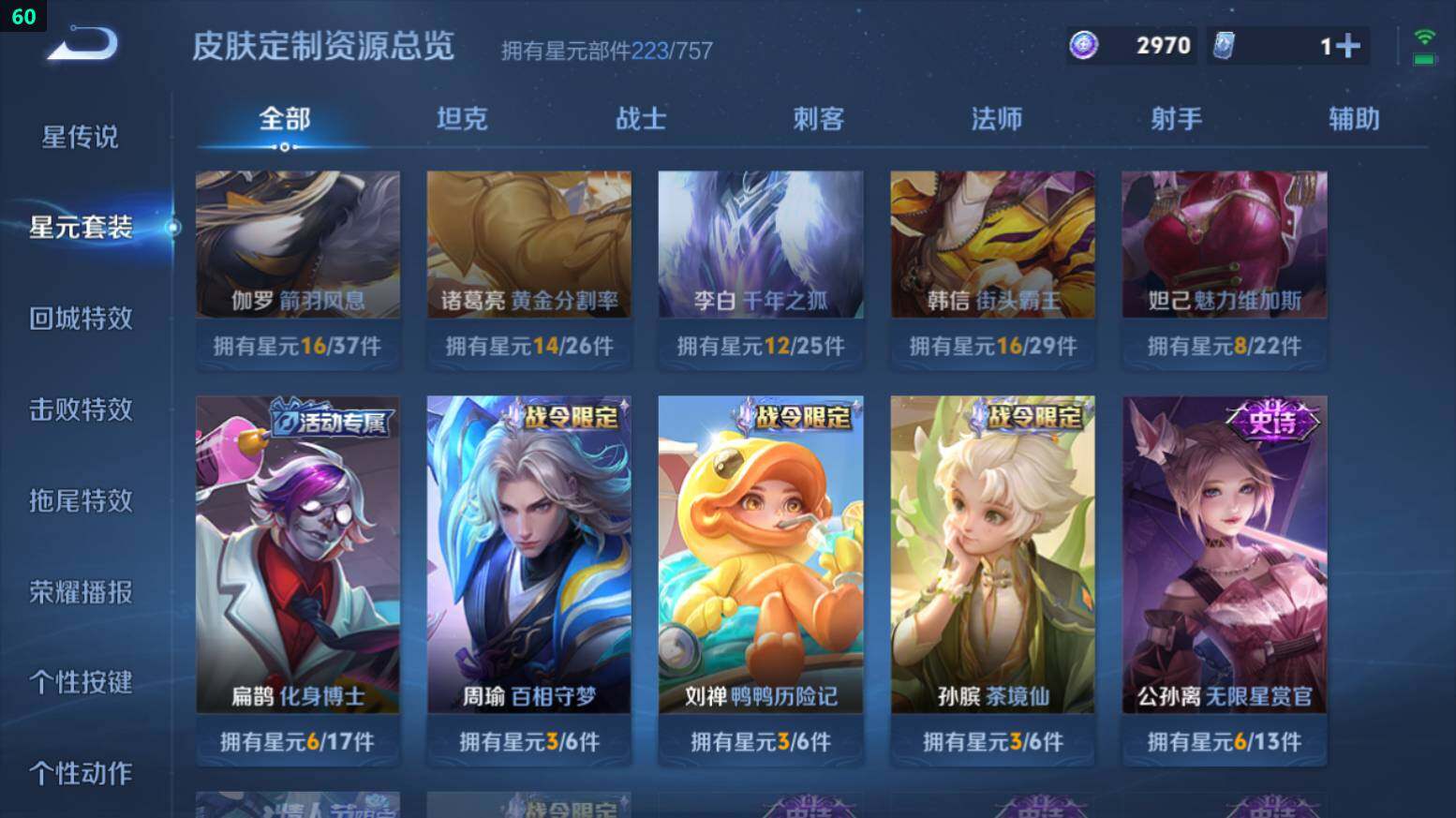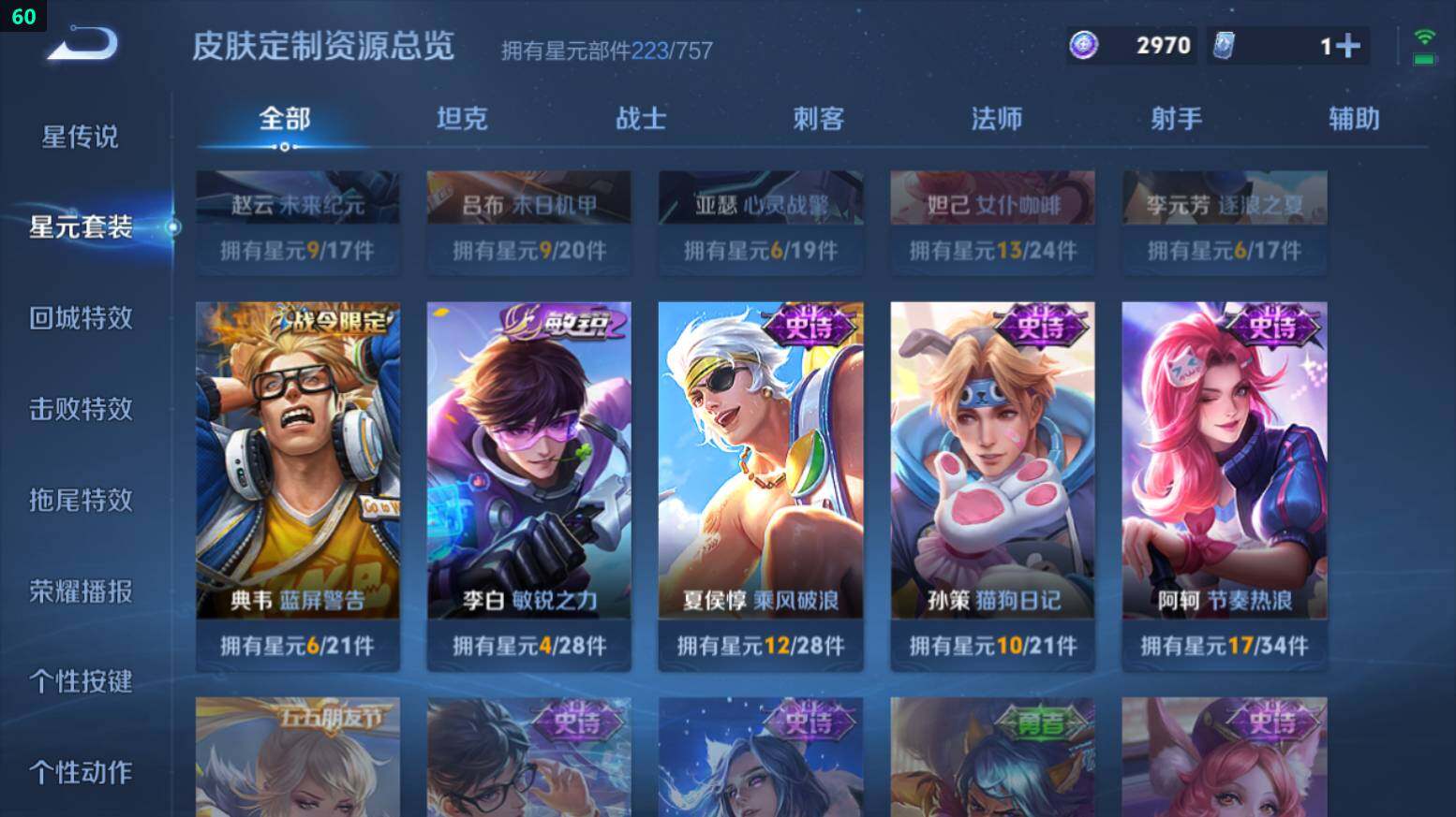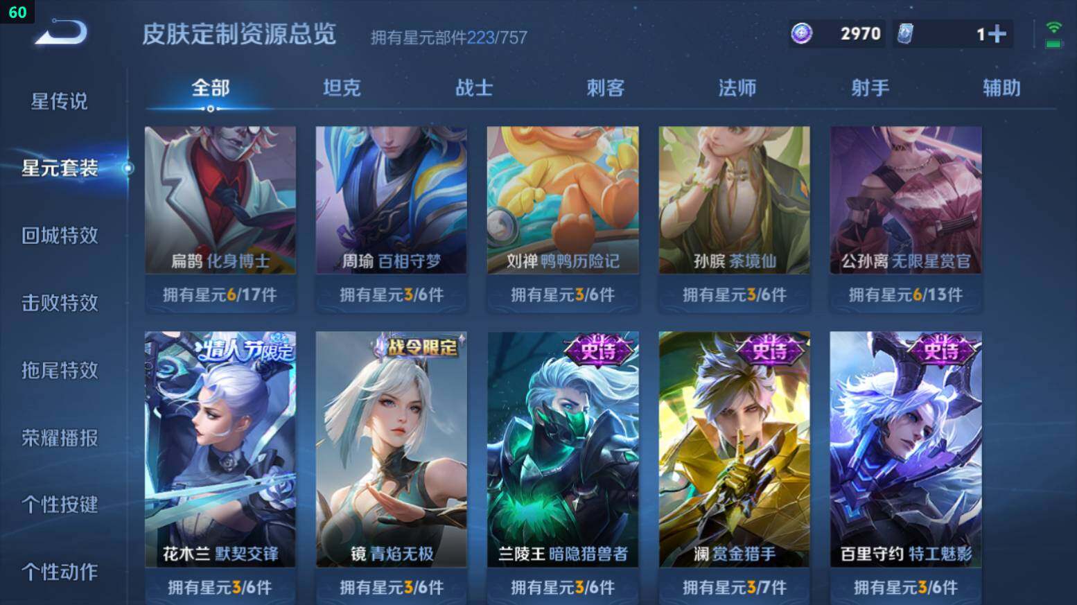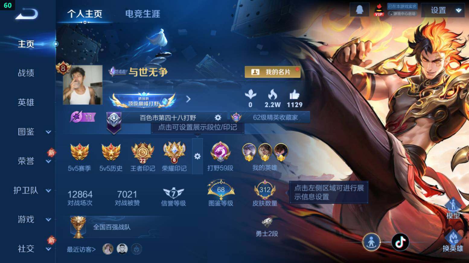 打野59段-9金标-万战澜/镜/宫本-3星传说-7按键苹果Q-V8-312皮肤-1典藏皮肤-2珍品传说-10传说-85史诗-2970星币