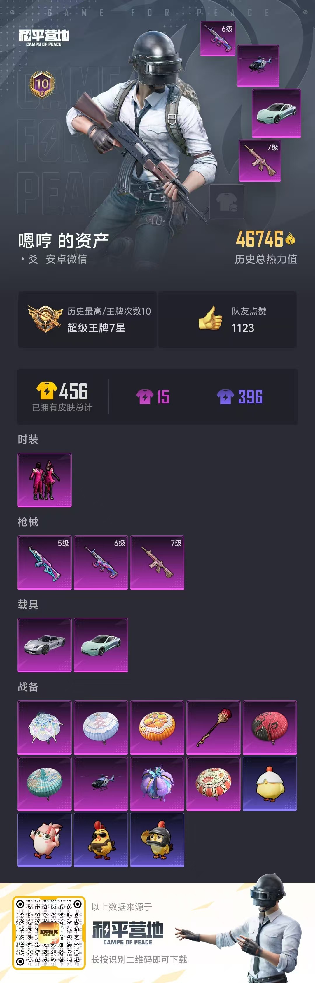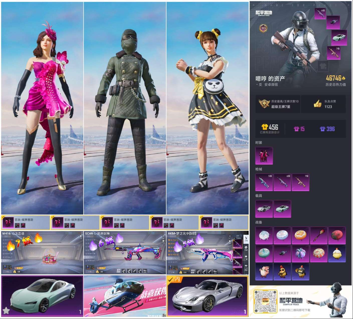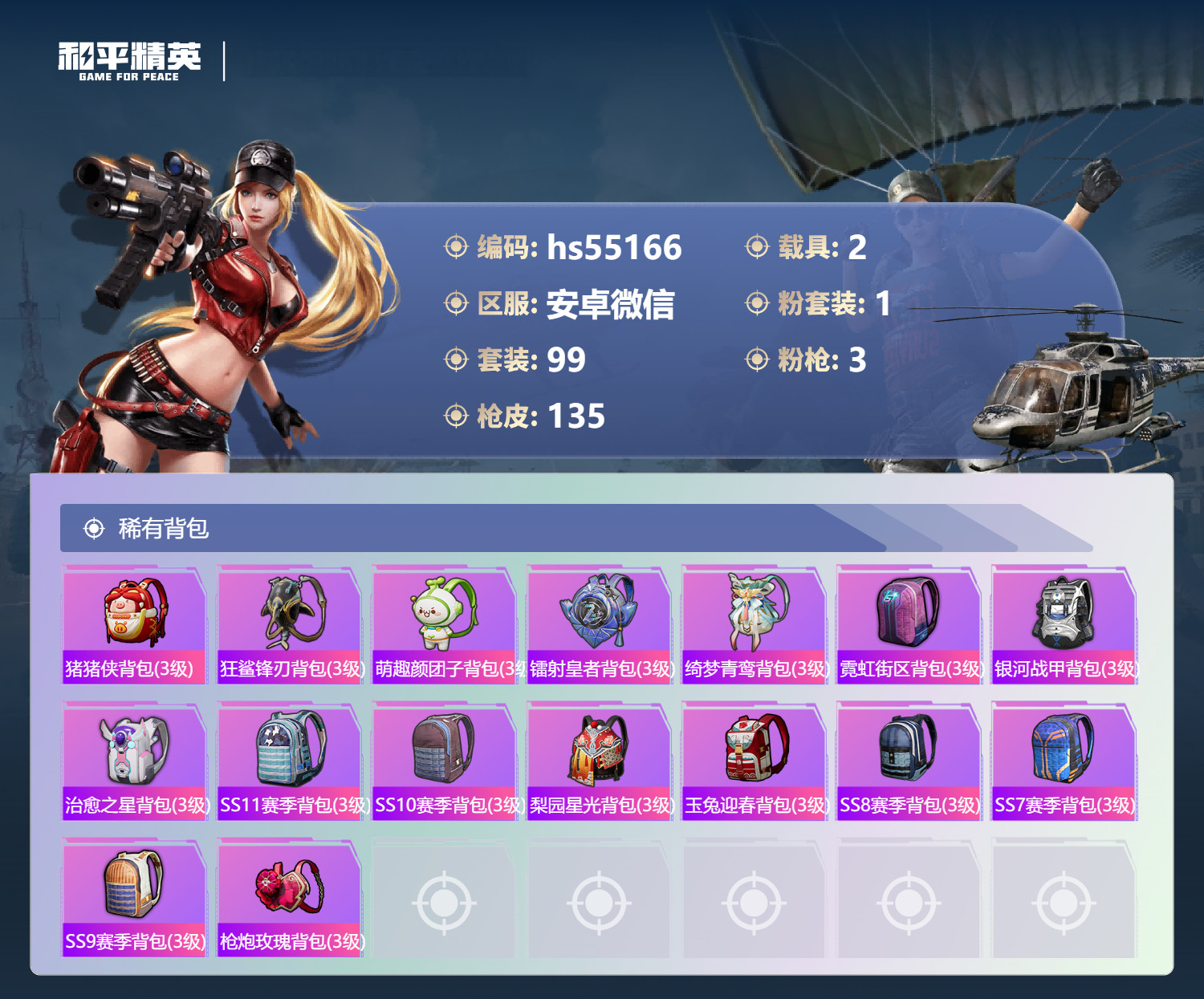hs55166 安卓v-10王牌印记-1粉装-3特效枪-2载具-46746热力值-99套装-135