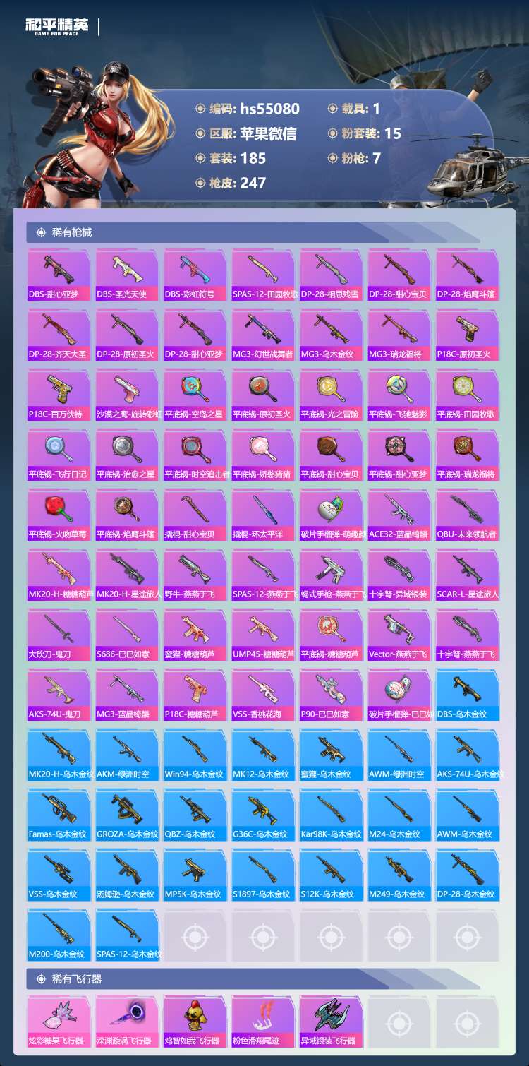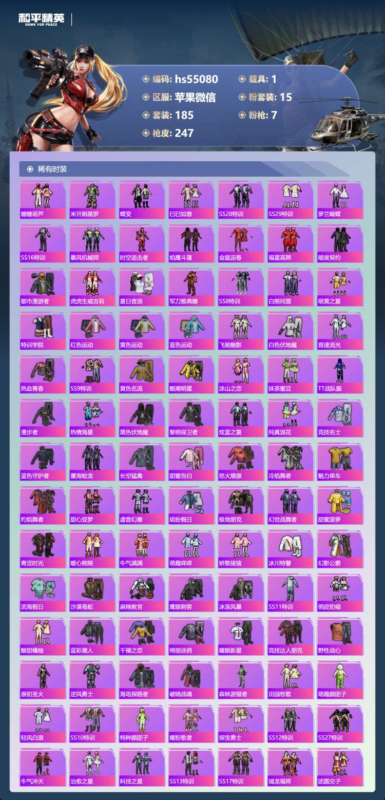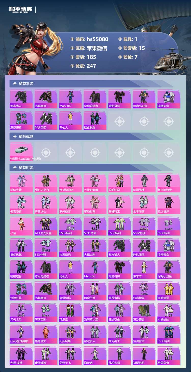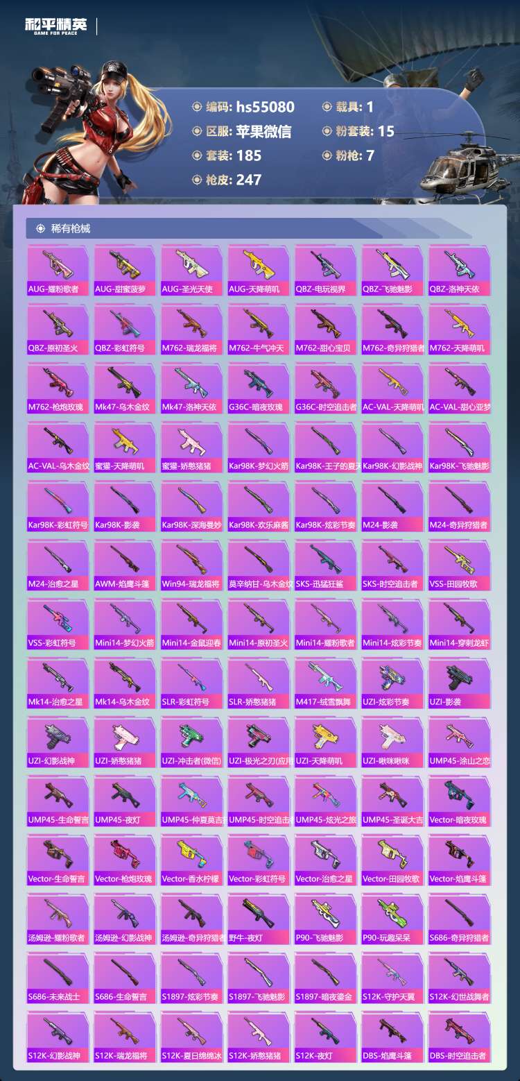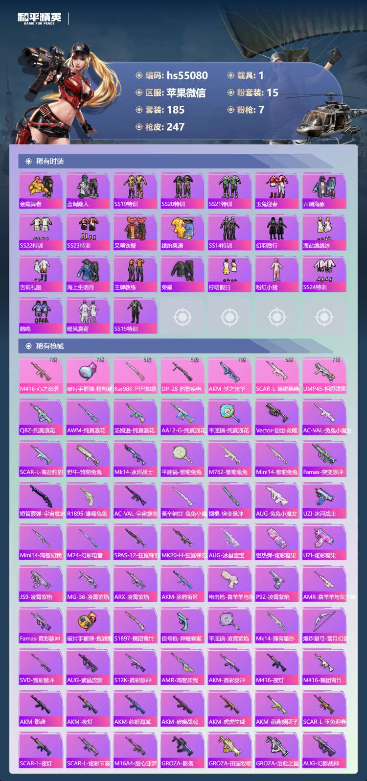 hs55080 苹果微-16王牌印记-15粉装-7特效枪-1载具-81225热力值-185套装-2