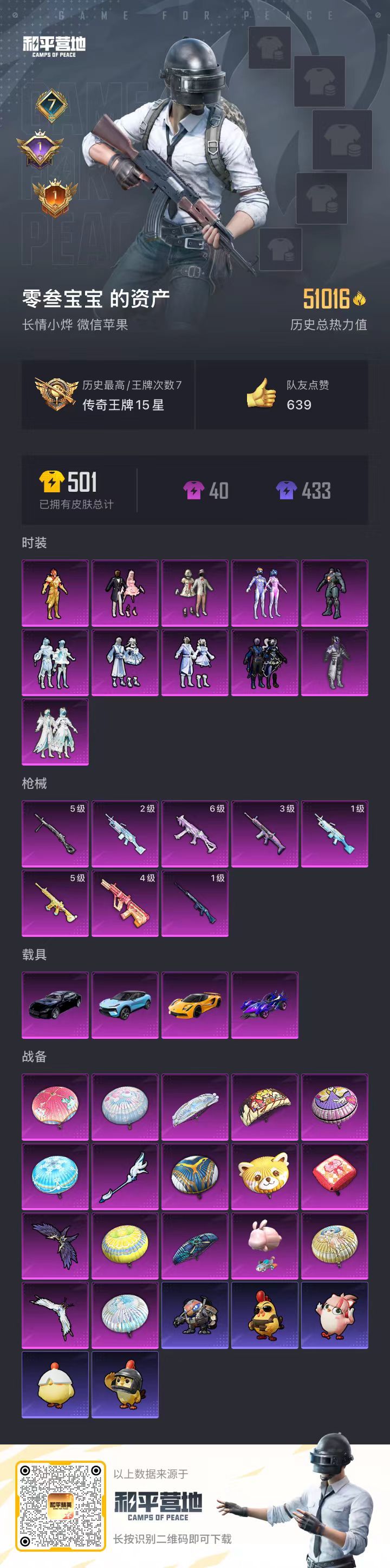 hs55191 苹果微-7王牌印记-11粉装-8特效枪-4载具-51136热力值-109套装-12
