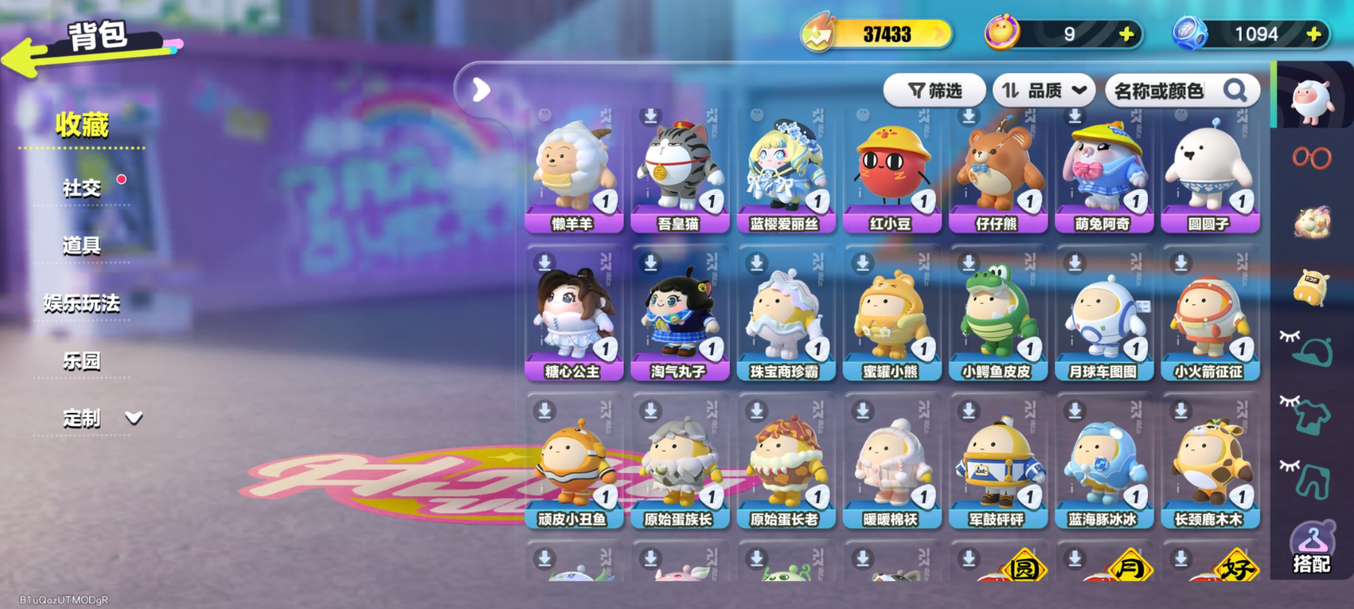 紫皮:DongDong,红小豆,机械师维迪,仓鼠米仔,麒麟纳福,吉他手卡萝,铃兰三月兔,甜心猫萝拉,大娃,盖碗茶青青,熊猫岁岁,航天员莱卡,三角龙小萨,失心熊,八音盒温妮,水母尤莱亚,涂山浅浅,机械鼓手贝克,懒羊羊,吾皇猫,蓝调暖丽丝,仔仔熊,萌兔阿奇,圆圆子,糖心公主,淘气丸子