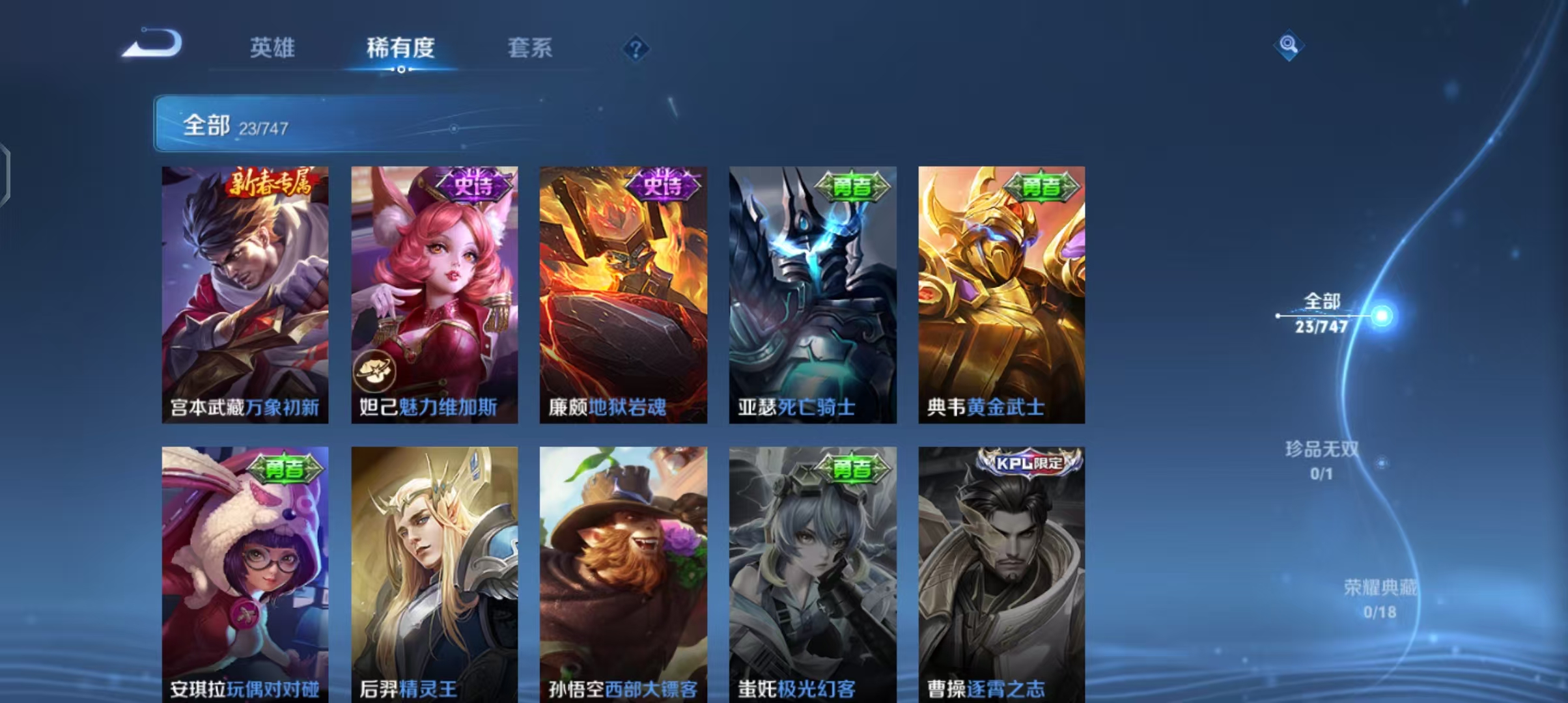荒野王者和平至臻皮3个,传奇3个英雄51个,杯数6600。还有和平王者中等号王者者末日机甲等