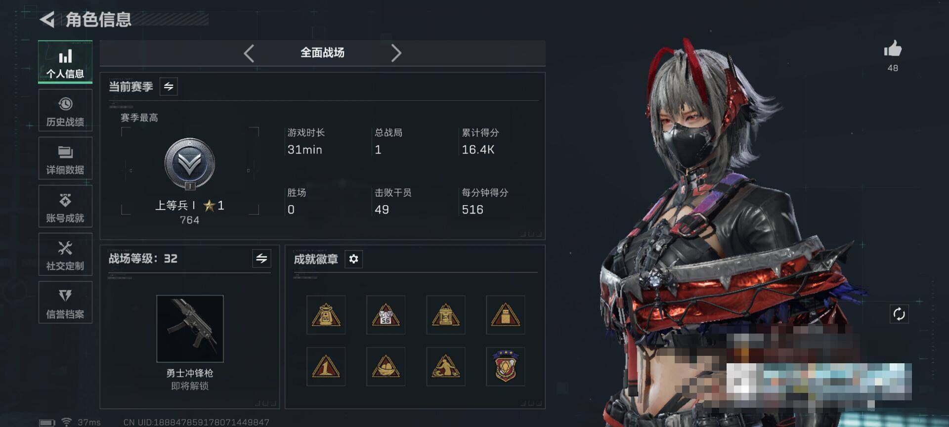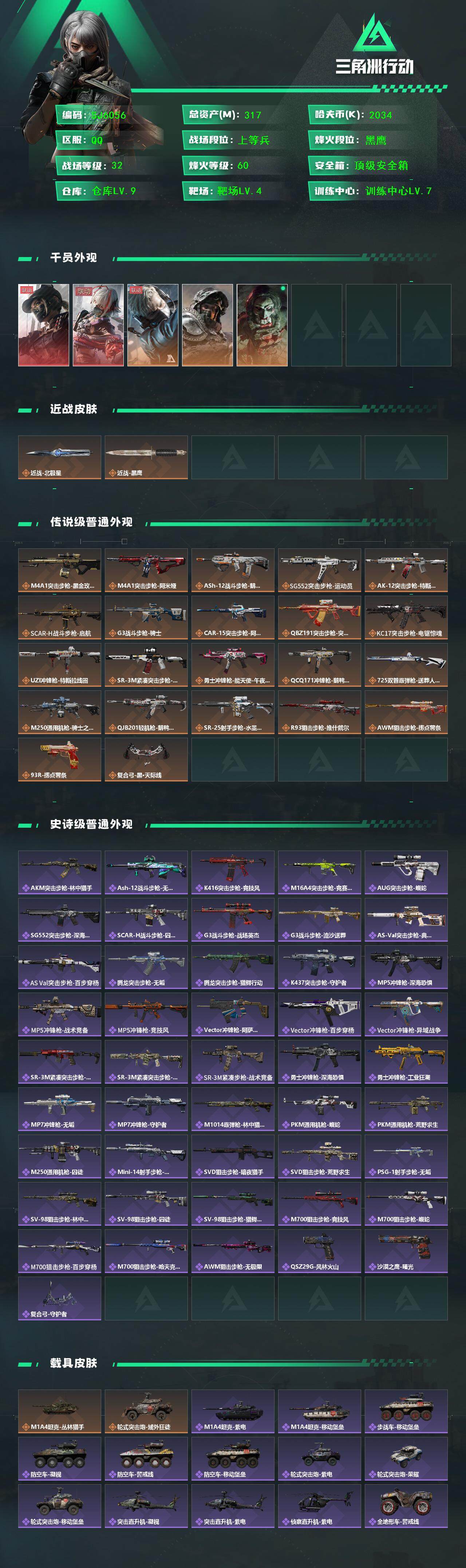 总资产(M):317M/哈夫币(K):2034K/哈夫币(K):2034K/全面战场等级:32_段位