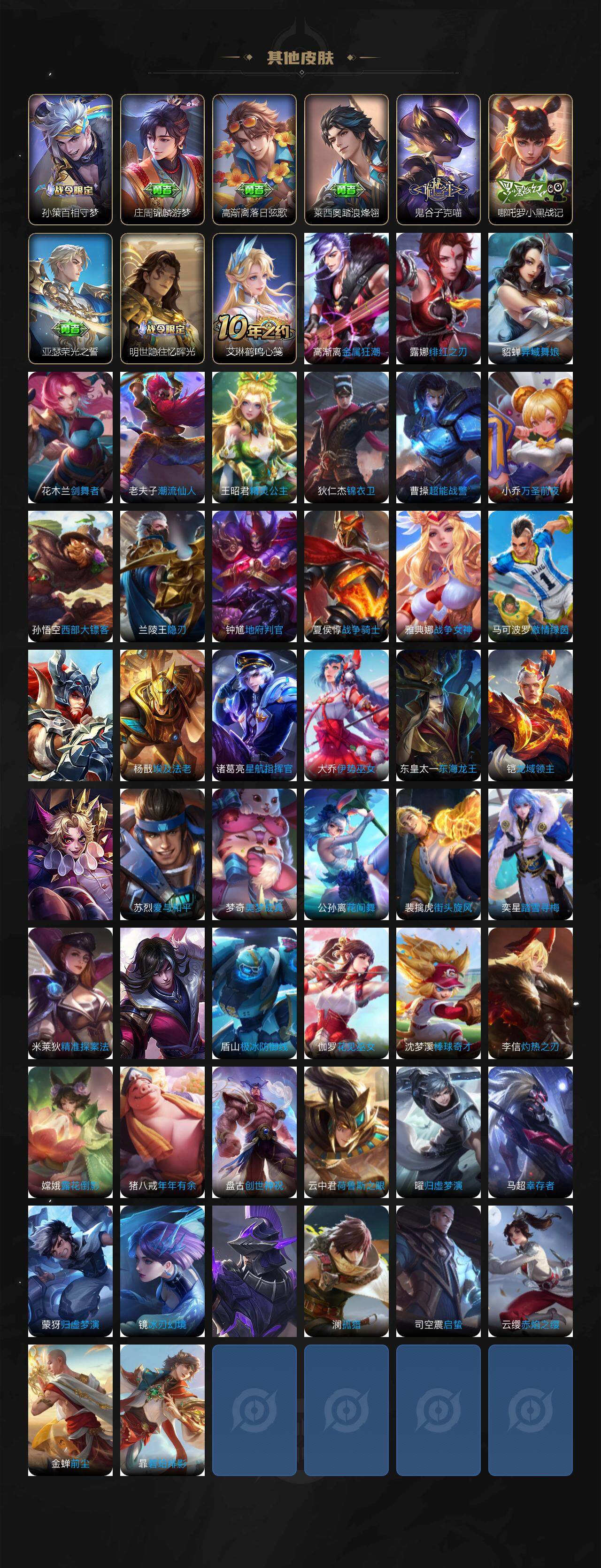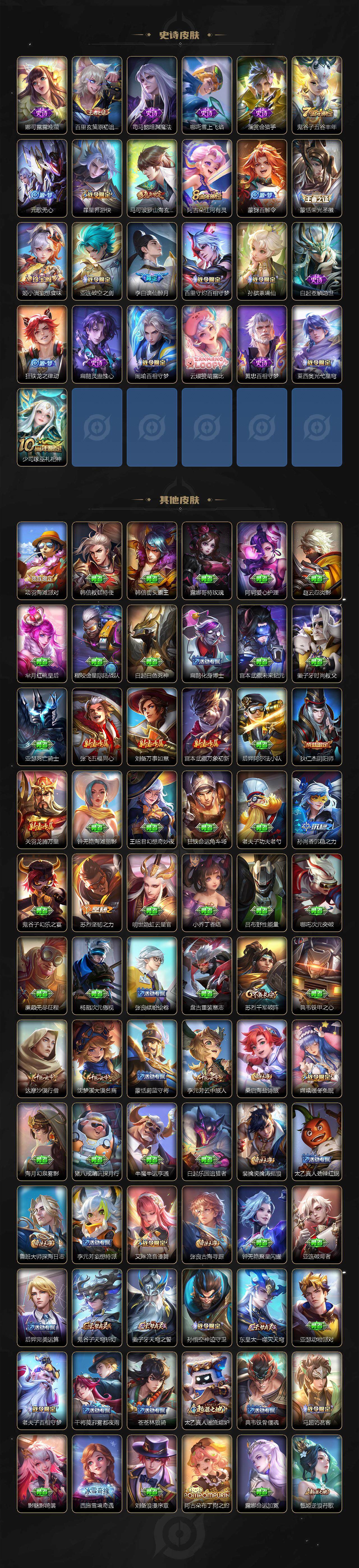 【传说皮肤】:大司命死亡执政官,桑启鸣野蒿,典韦战鼓燎原,马超无双飞将,裴擒虎寅虎赤拳,干将莫邪久胜战神,狄仁杰超时空战士