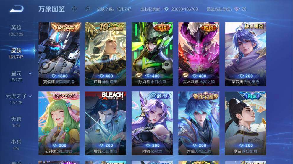 安卓Q-V5-161皮肤-1典藏皮肤-3传说-38史诗-1天幕-2按键【英雄