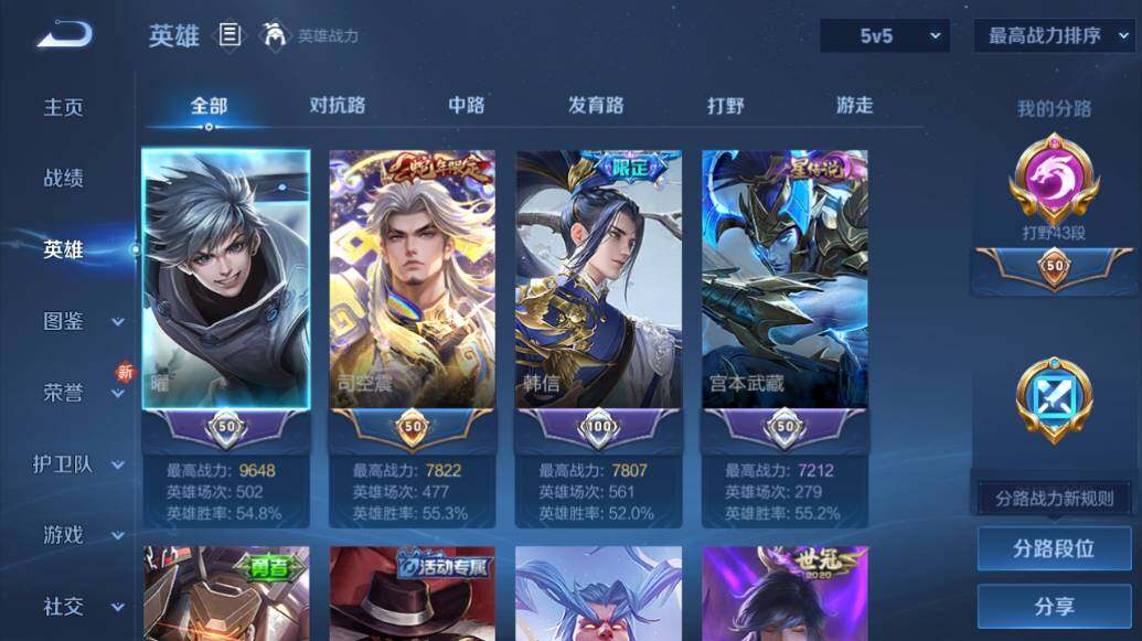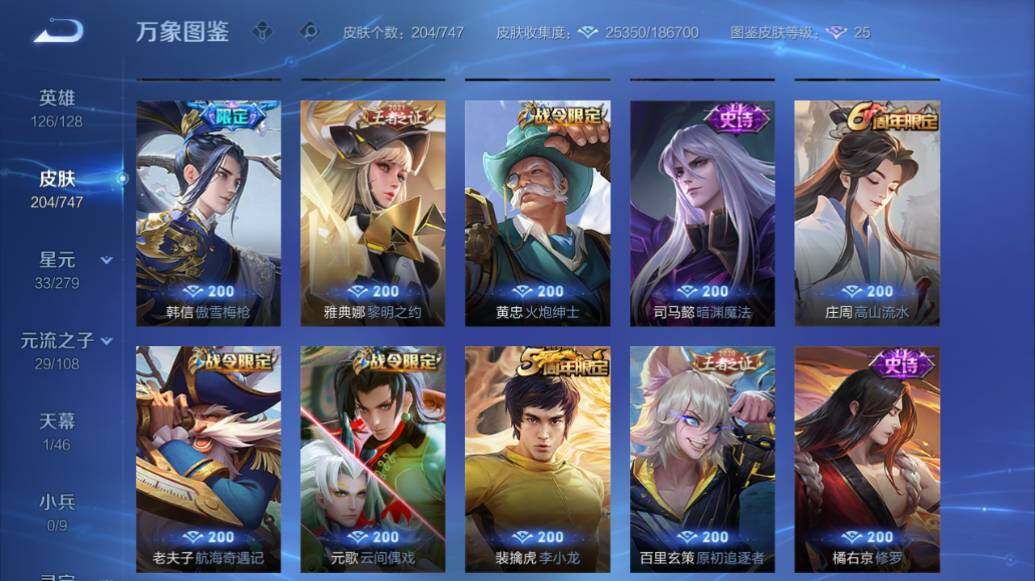 连体和平3粉装4升级枪,打野43段,安卓Q-V6-126英雄-204皮肤-1珍品传说-9传说-47史诗 嫦娥器灵落星盏,关羽冰锋战神,司空震愿照山河定,女娲愿照千秋盛,妲己愿照众生,李信一念神魔,达摩黄金狮子座,宫本武藏地狱之眼