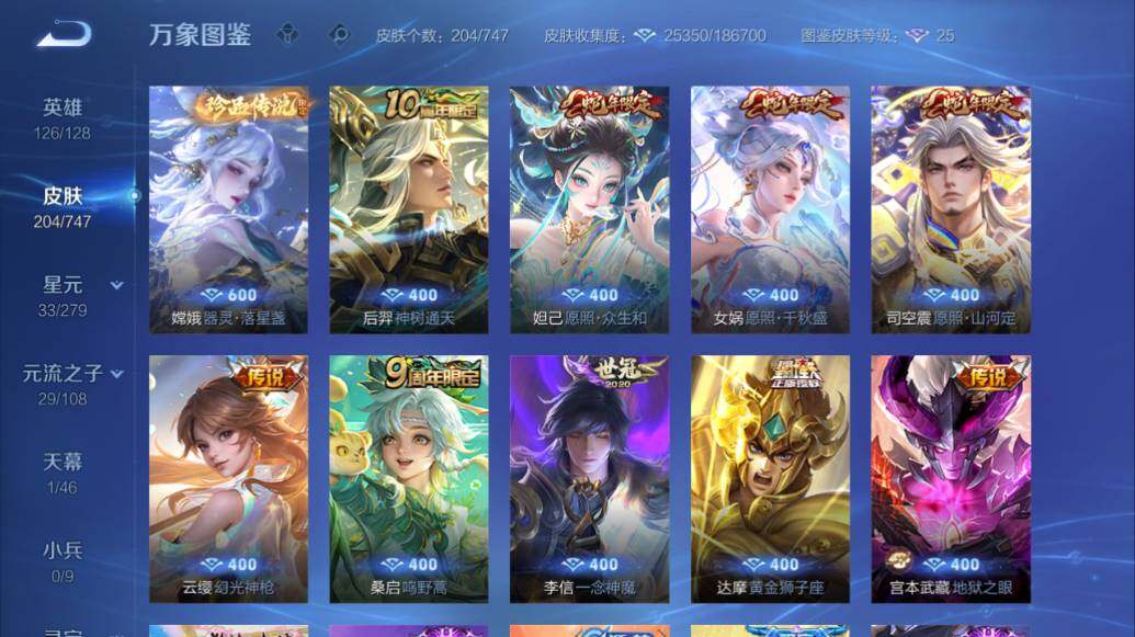 【传说皮肤】:后羿神树通天,司空震愿照山河定,女娲愿照千秋盛,妲己愿照众生和,云缨