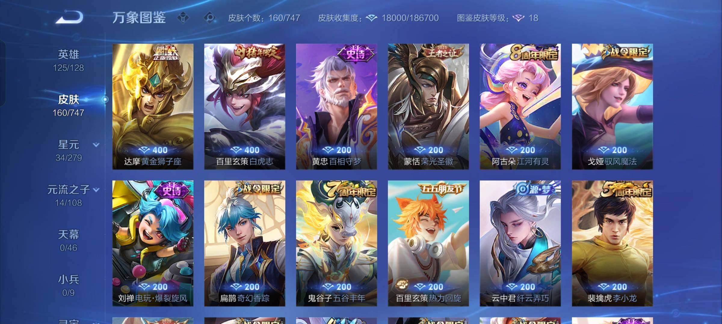 【传说皮肤】:达摩黄金狮子座,百里玄策白虎志