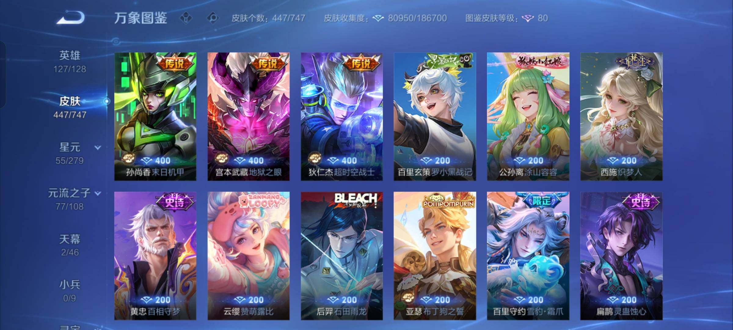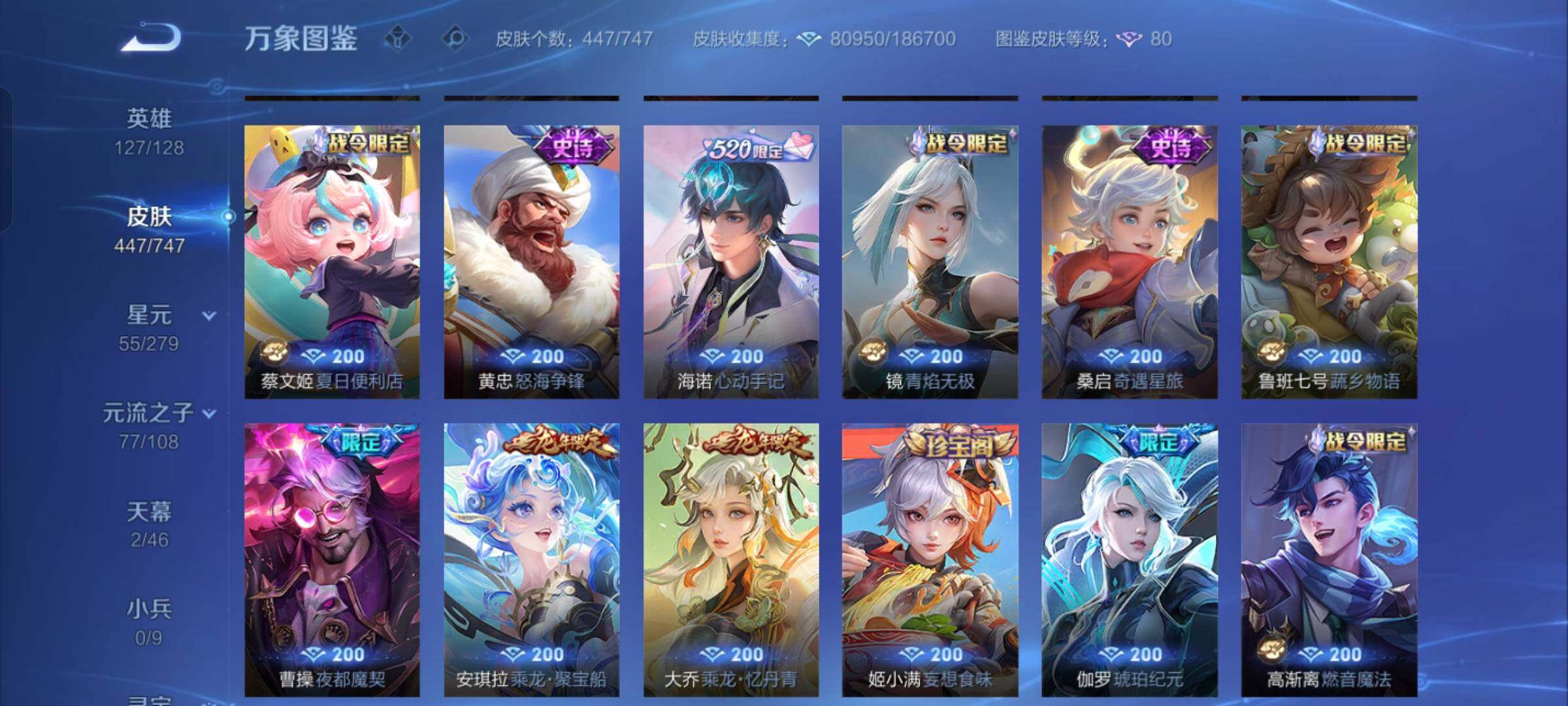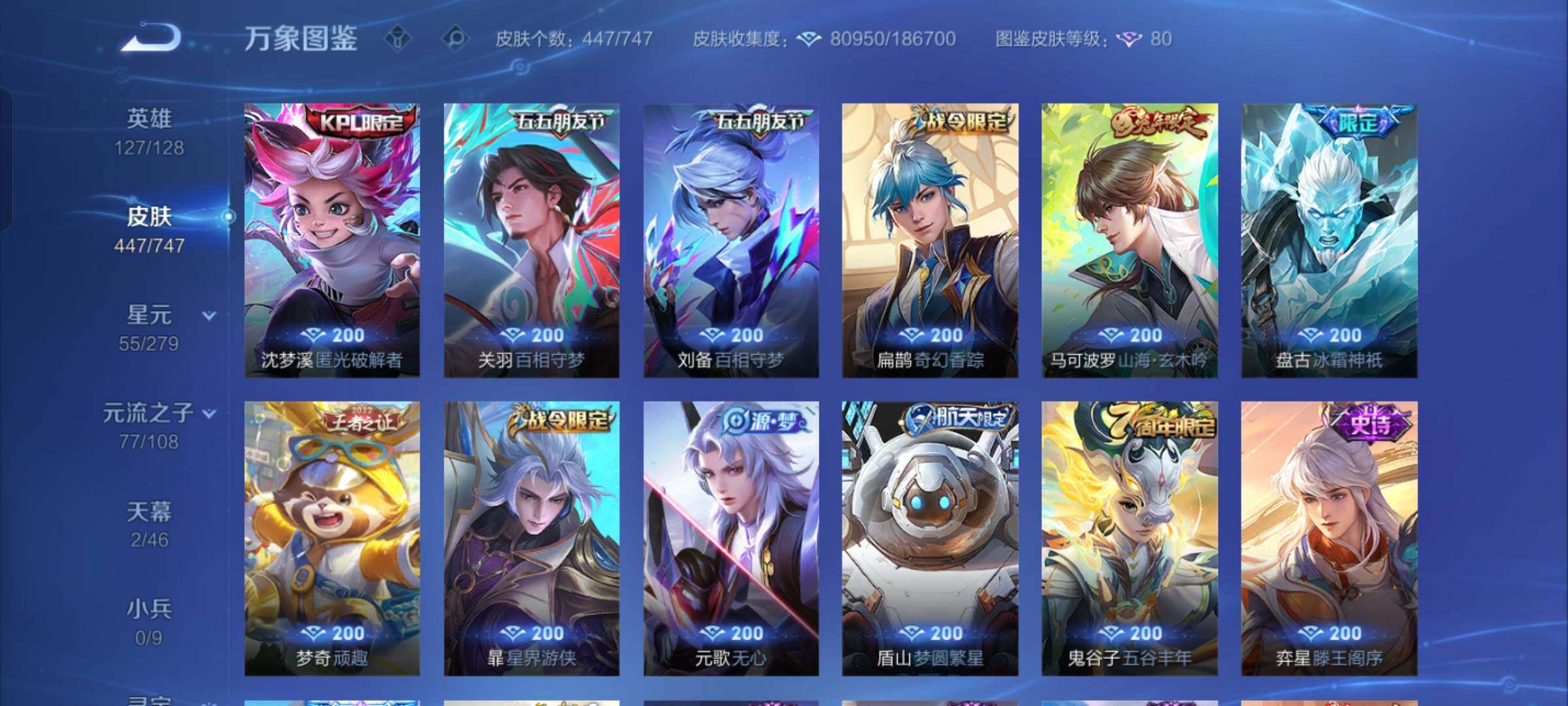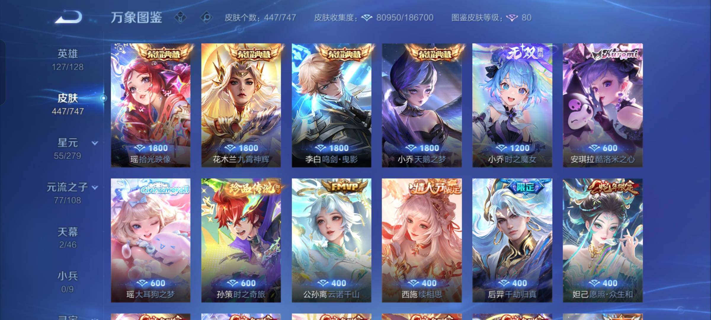 【店铺主推v10·4典藏·1无双·3珍品传说·3星传说·55传说·全皮西施·天鹅之梦·拾光映像·鸣剑曳影·九霄神辉·时之魔女·金色仲夏夜·挚爱童话天幕·龙腾四海天幕·大耳狗之梦·酷洛米之心·满蛇年限定·满龙年限定·冥王哈迪斯·浮生妄·18年限·可二次】YXw9246-安卓Q-127英雄-447皮肤-15王者印记-210铭文-贵族积分20w【贵族10】【v10·4典