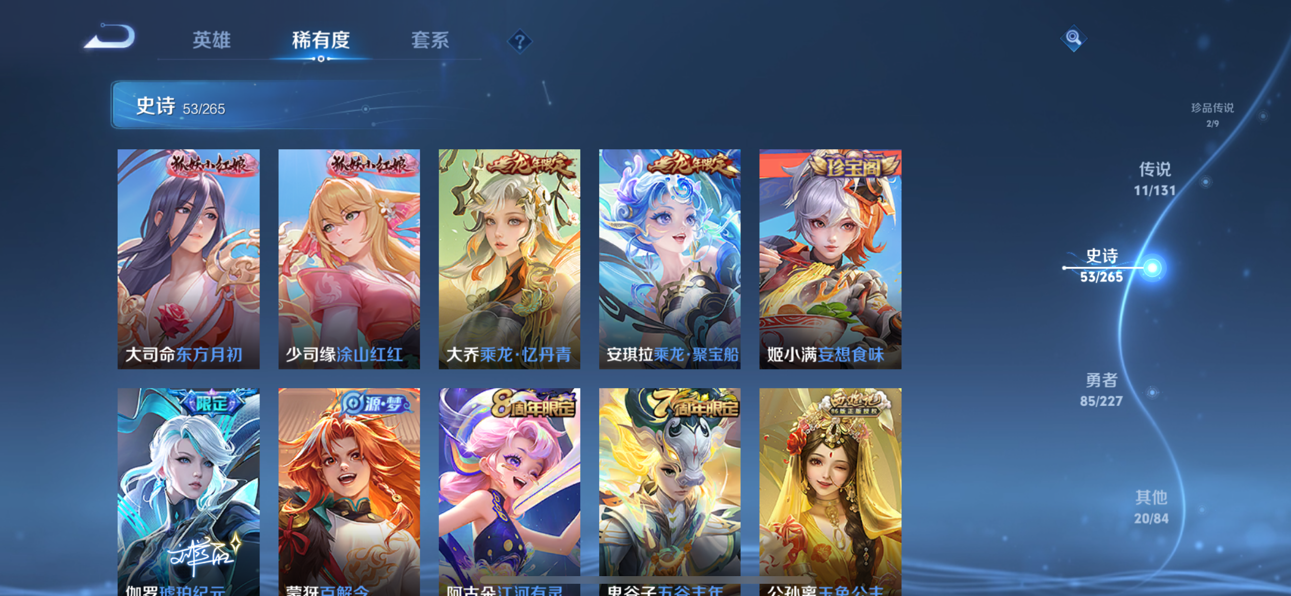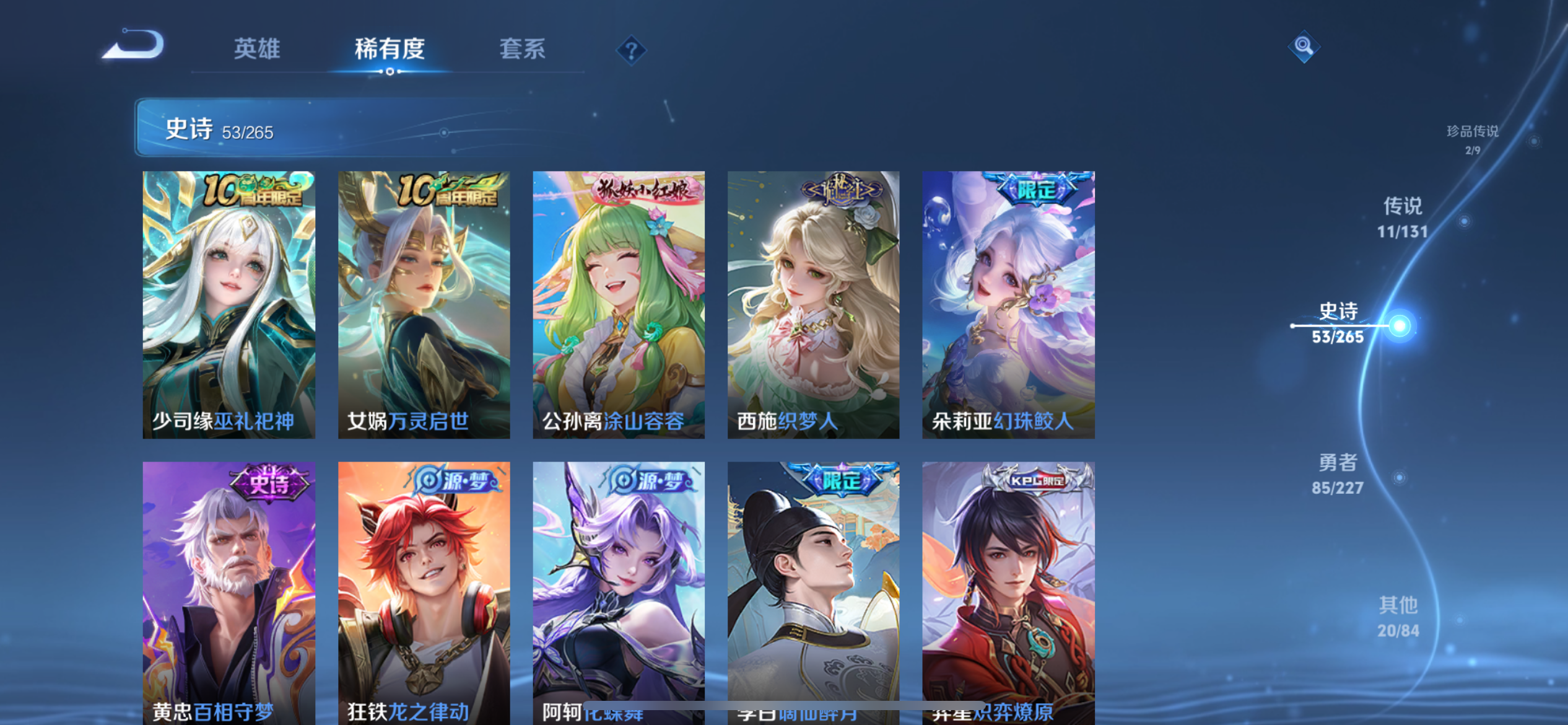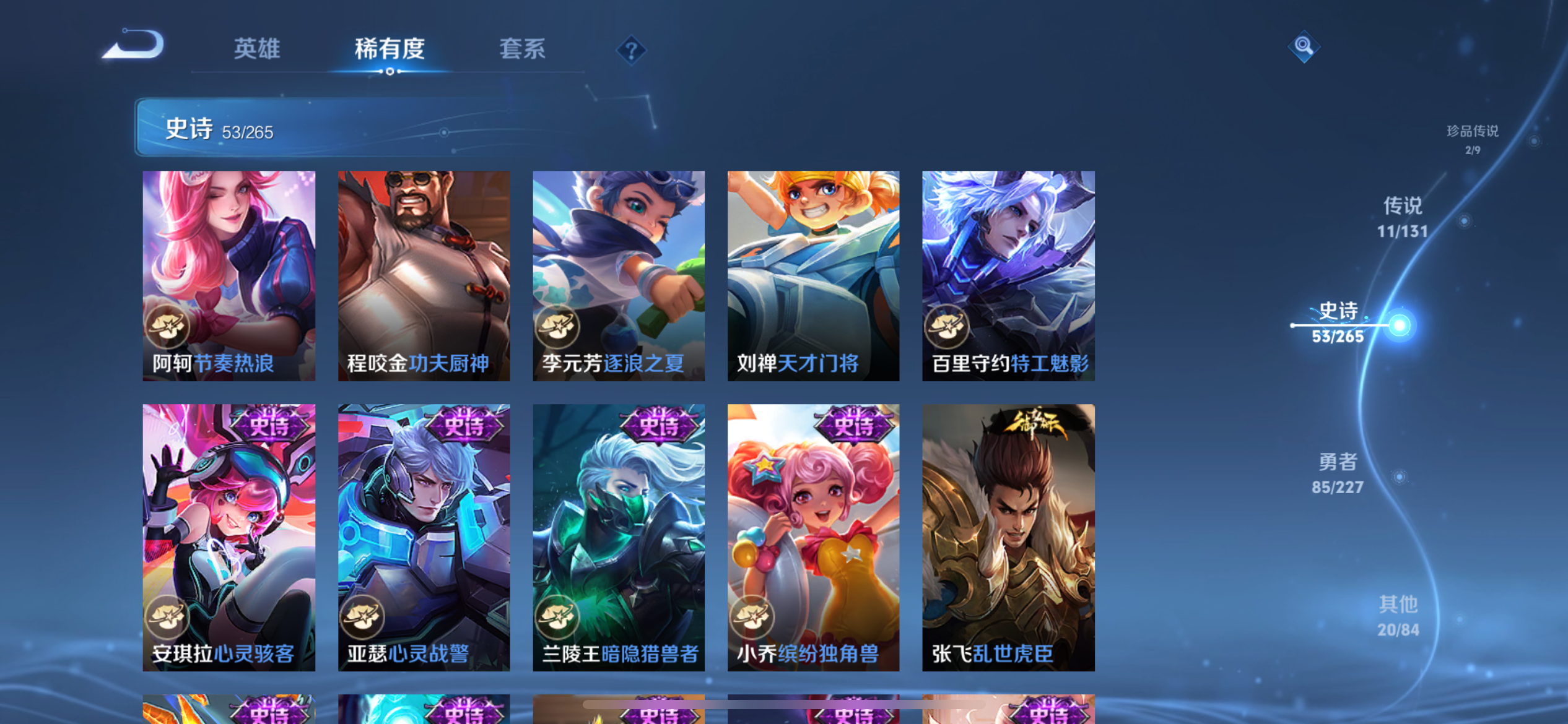 皮肤171 英雄128 至圣王者 珍品传说1 传说11 其他皮肤66-娱乐号
