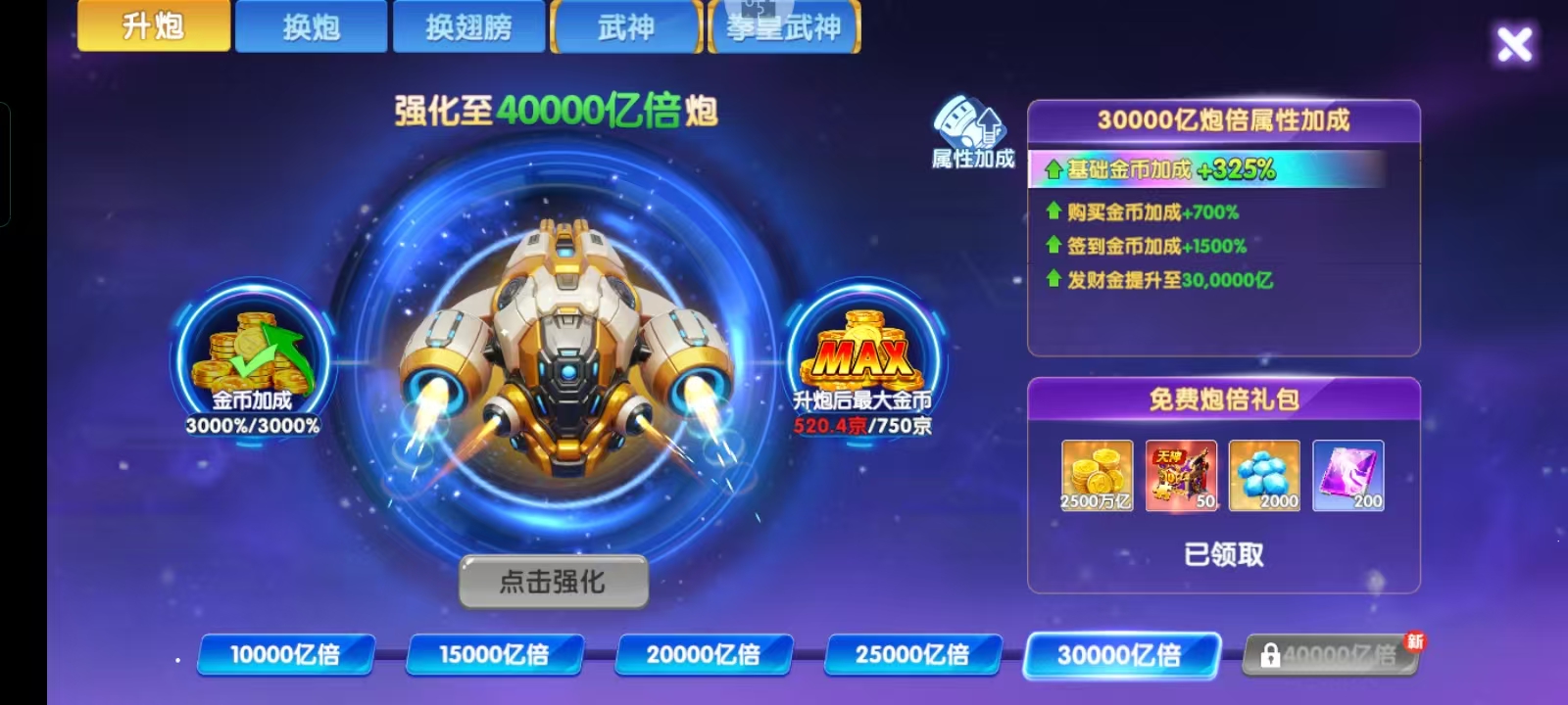 V18加成4603武神姐妹花满!天神基本满!马上四万炮!已超神二!