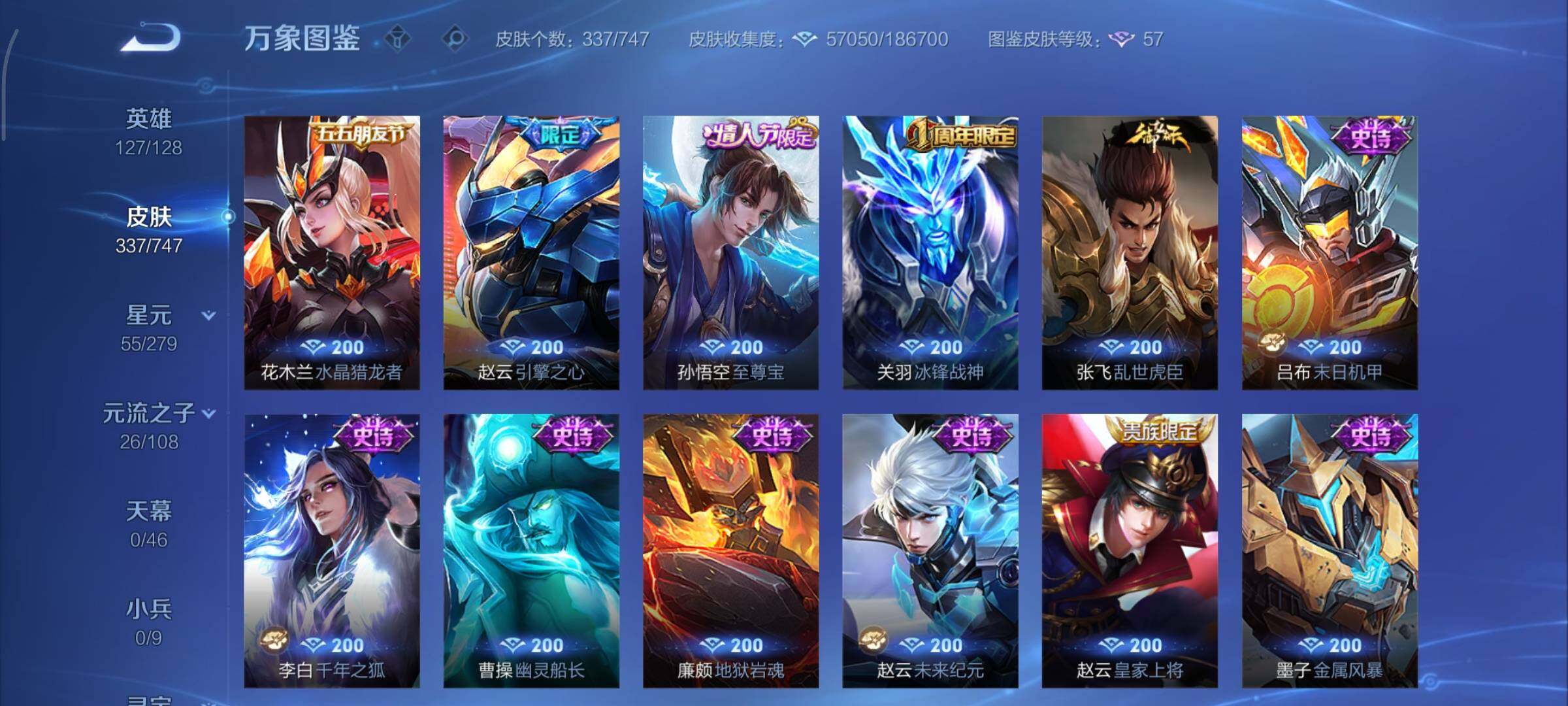 /可换绑【V9精品号 双典藏 火舞李白无双 双珍品怪盗基德 李逍遥 祈雪灵祝 多传说限定质量号】 21按键,2星传说,17王者印记,满级铭文,可二次KK6823,安卓Q-V9-337皮肤-2典藏皮肤-2无双-2珍品传说-37传说-93史诗【英雄全皮】:李信全皮,蒙恬全皮,司空震全皮,戈娅全皮【荣耀典藏】:孙尚香杀手不太冷,虞姬神鉴启示录【无双皮肤】:李白碎月剑心,不