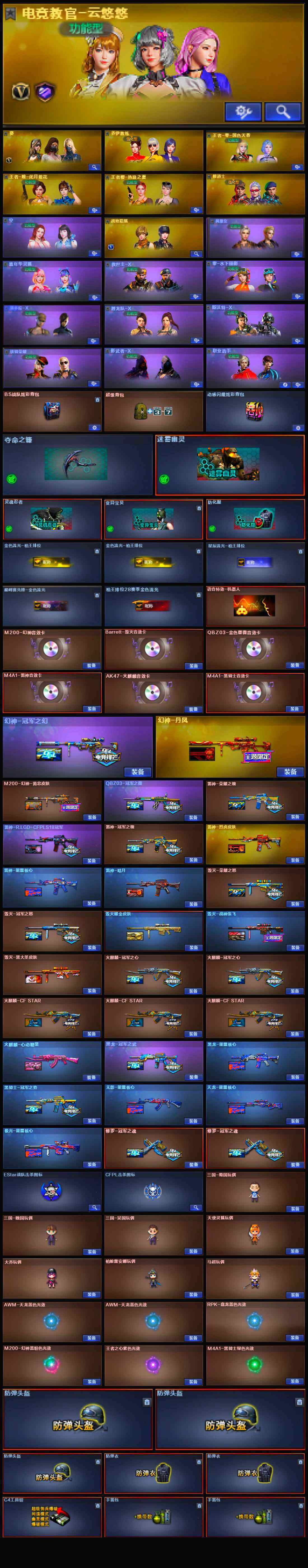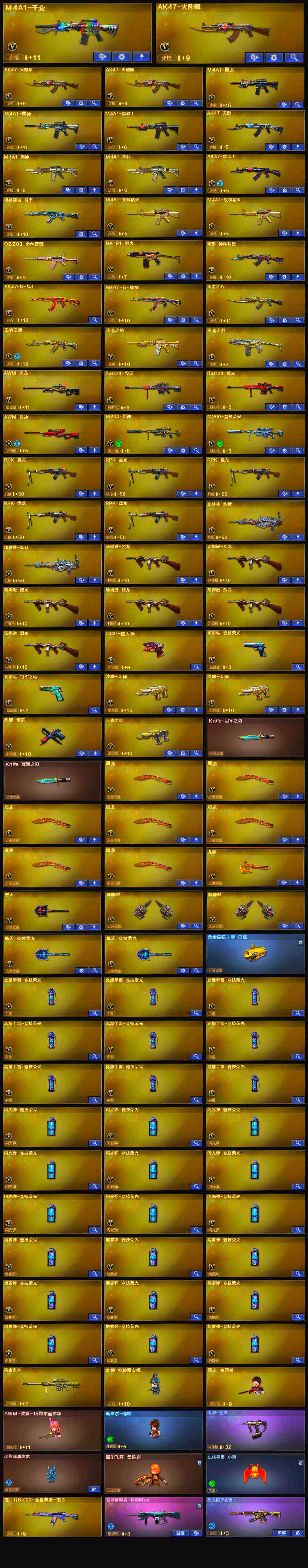 【热门武器】:QBZ03-金色蔷薇,M200-幻神,M200-竞技荣光,柯尔特-冠军之特,M4A1-黑骑士,汤姆逊-烈龙*6,RPK-盘龙*5,加特林-炼狱*2,斯泰尔-蝴蝶,裁决-雪莉杨,COP-堕天神,沙鹰-修罗,Knife-冠军之刃*2,黄金猫猫手套-白鲨