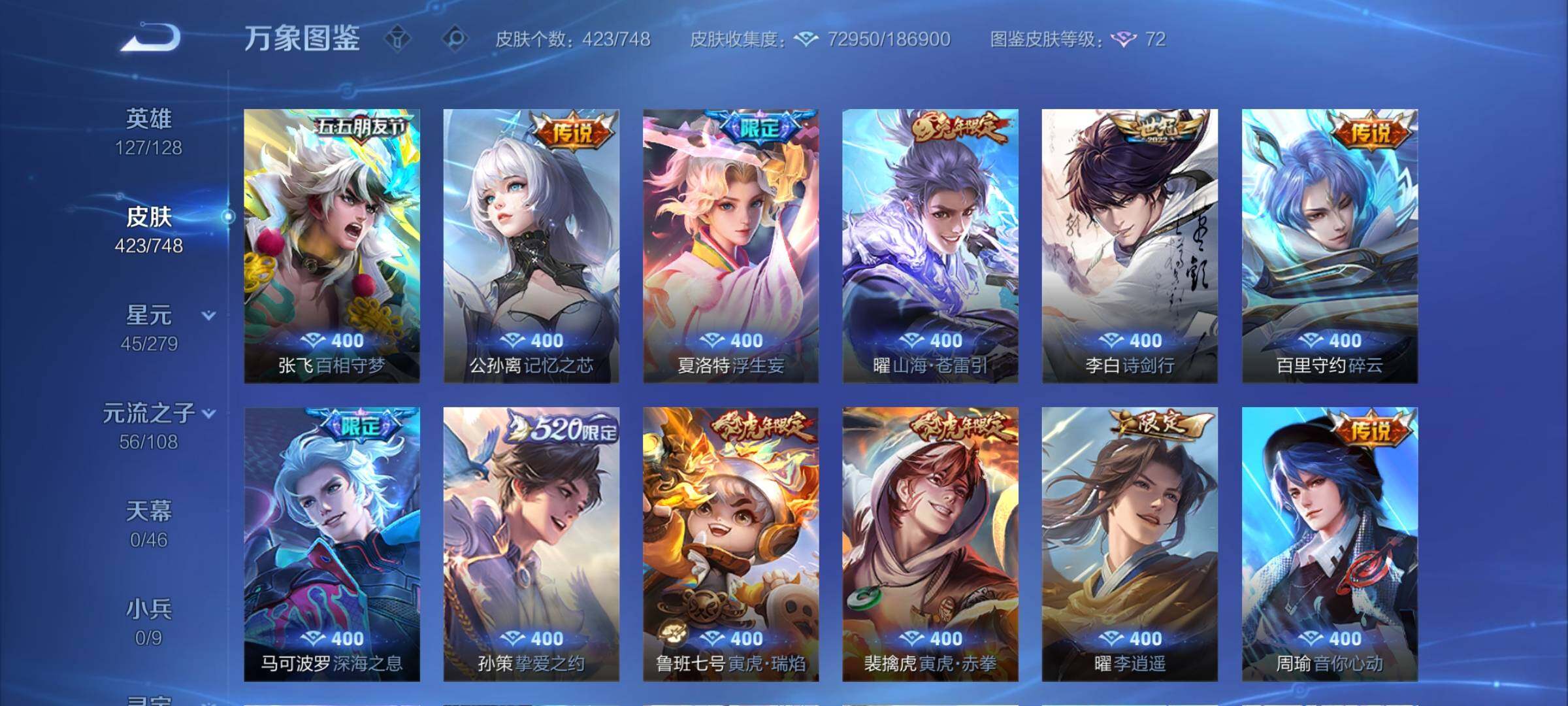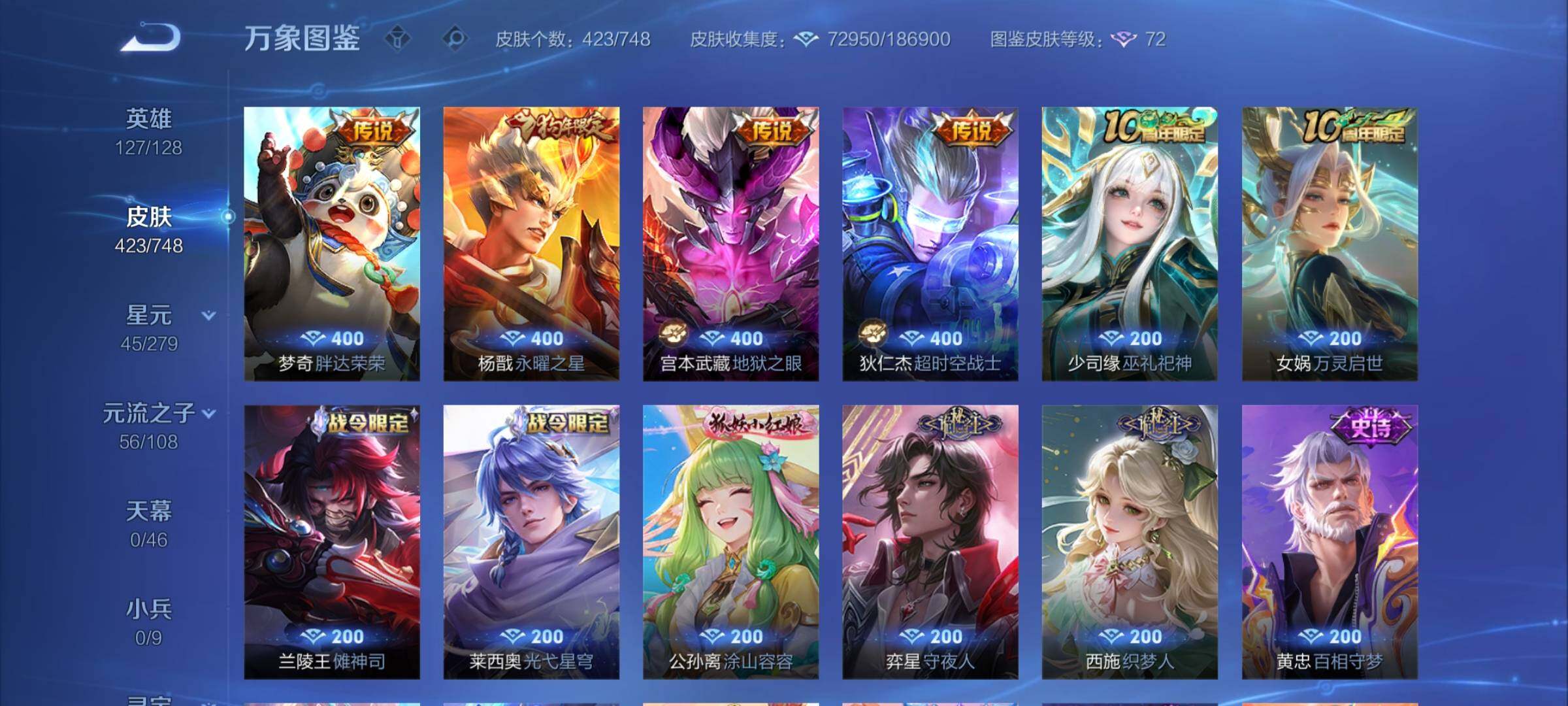 【店长推荐·差3.1W积分V10·2典藏·2无双·4珍品·3星传说·44传说·
