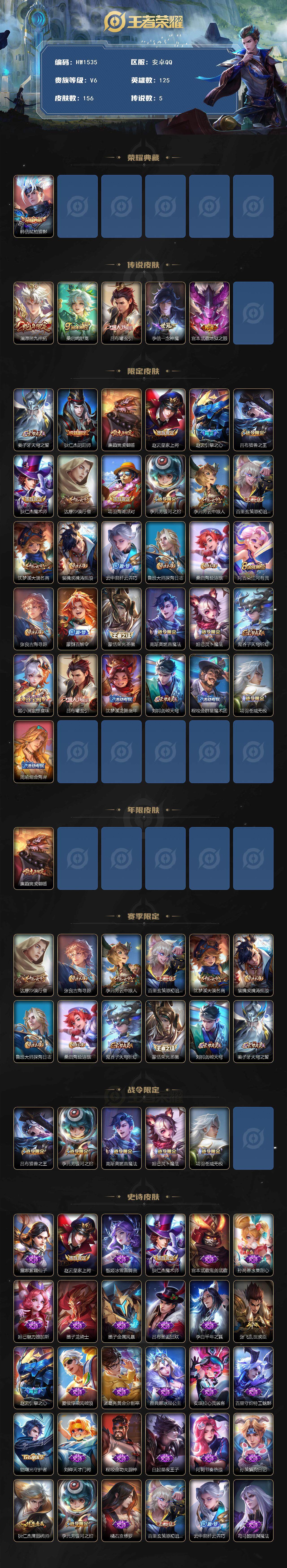 皮肤156 英雄125 至尊星耀 荣耀典藏1 传说5 其他皮肤57-【弑枪猎影】156皮肤1典藏5传说 曦玄引 一念神魔 愿照九州拓 鸣野蒿 地狱