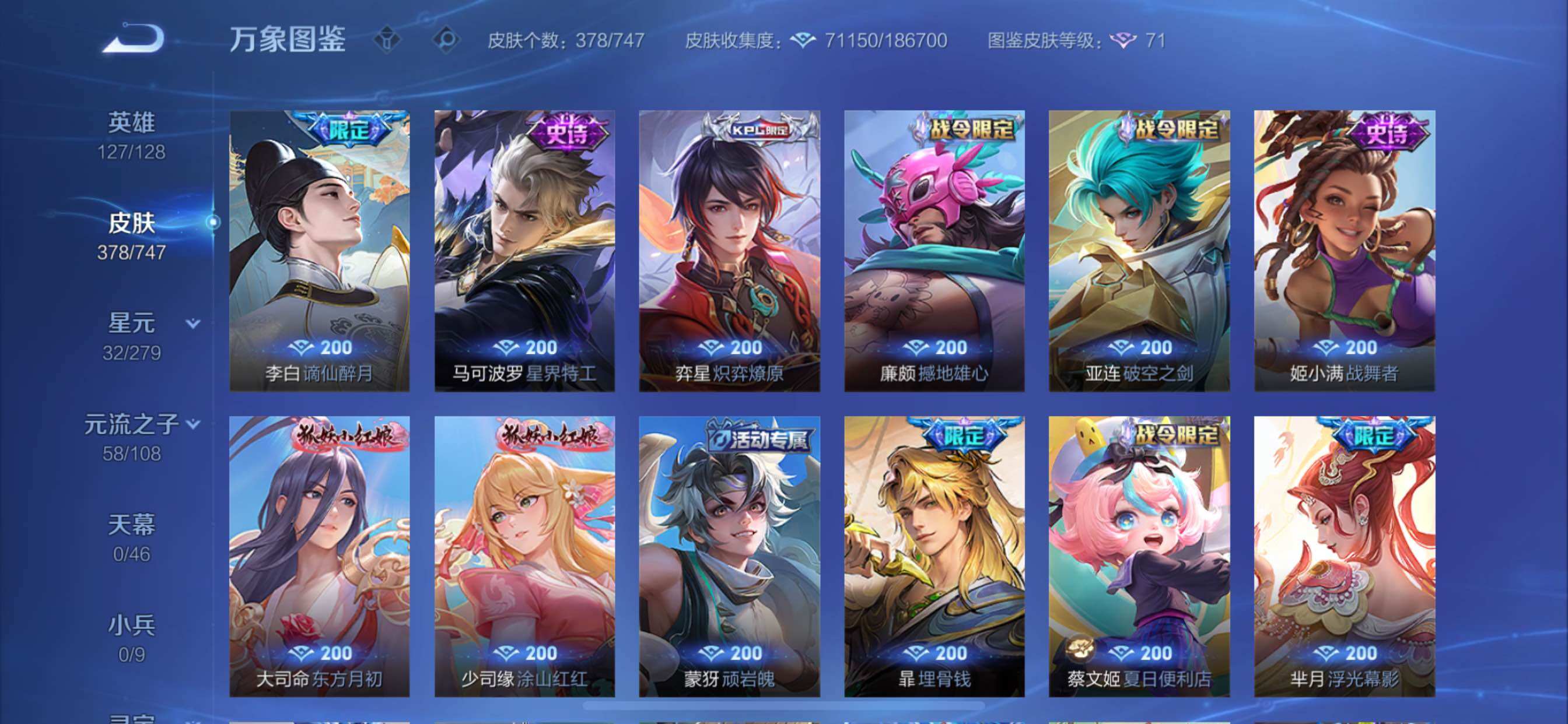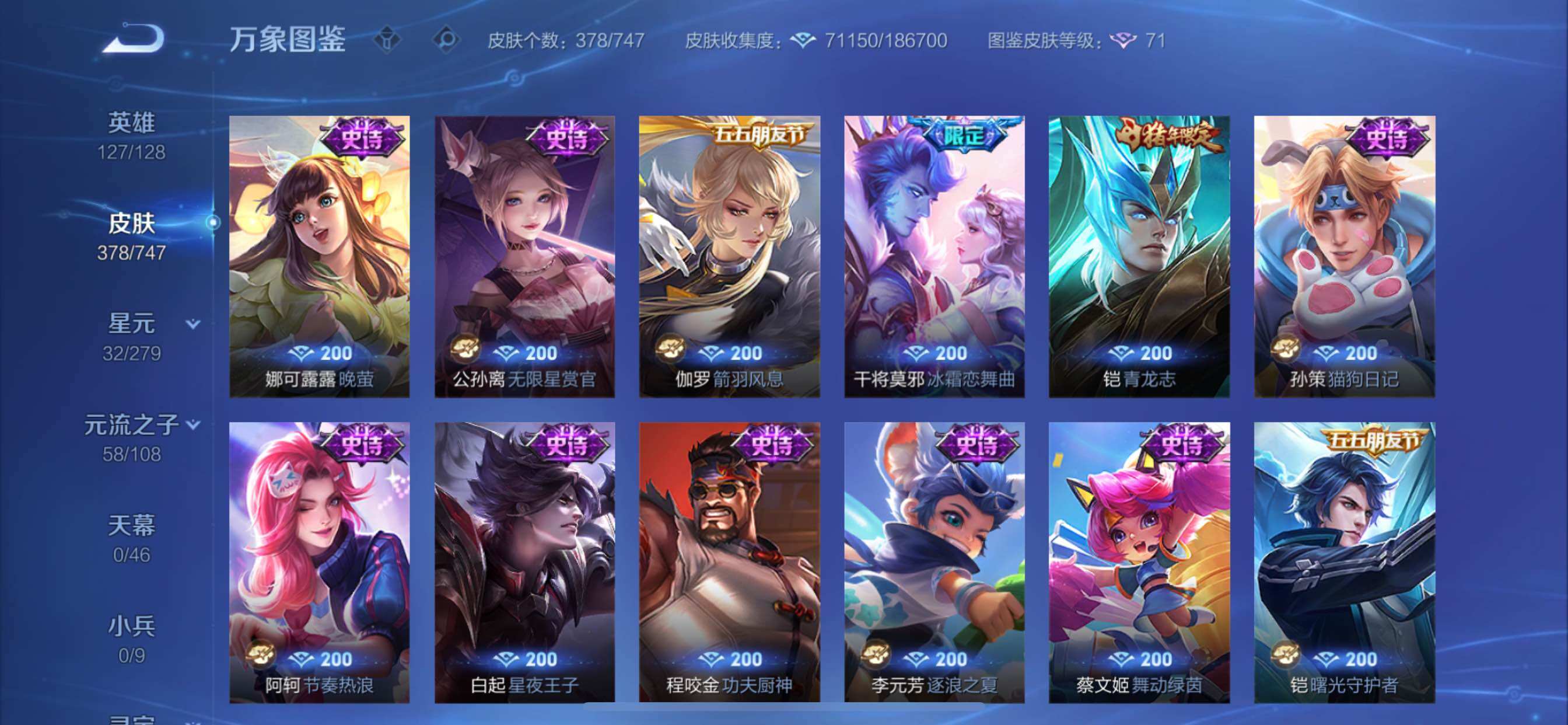 可换绑【V10精品号 孙策全皮 2典藏 5无双 7珍品 生肖限定12个 多传说