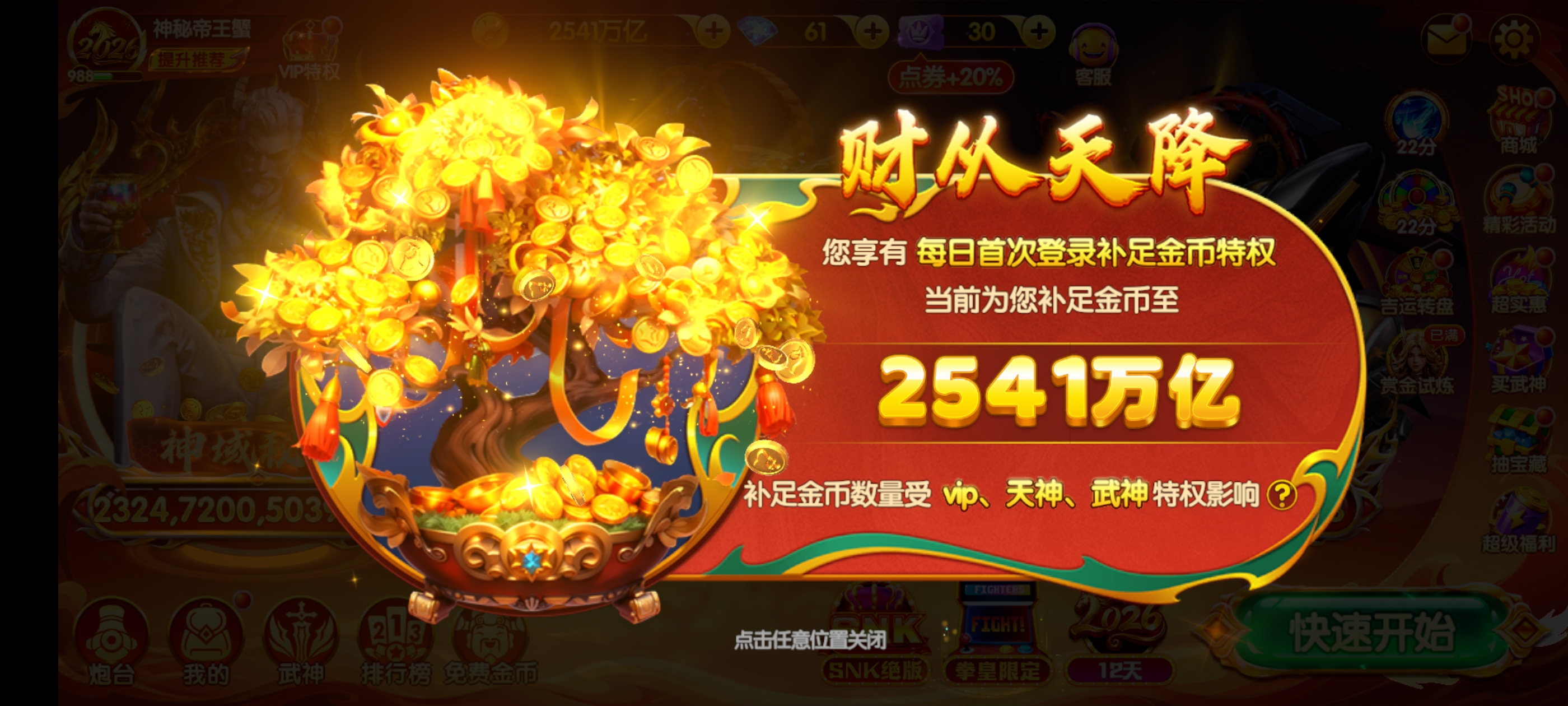 鱼乐达人vivo渠道极品高配v18,装备全满,天神也将近全满,将近6000%的高加成,羁绊全开,24%的boss暴击概率,每天救济1京左右,起号概率高,细节如图所示,游戏中心特权11