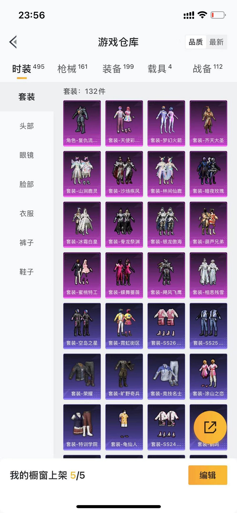 629-可二次【16粉装2特效枪4载具可秒换绑】、苹果Q区-60116热力值-4印记-132套装-161枪皮、【4载具】、兰博SUV黄色、海龙奔腾、双人摩托梦幻火箭、鬼马风驰【1稀有】、AKM-百万伏特【16粉装】、冰霜白皇、蜜桃特工、林间仙鹿、山涧鹿灵、梦幻火箭、天使彩虹糖、暗夜玫瑰、齐天大圣、复仇流浪者、相思残雪、飓风飞鹰、蝶舞蔷薇、葫芦兄弟、骨龙祭渊、银龙傲海、沙场疾风【2特效枪】、AUG-星之彼岸(7级)、AWM-焰龙焚天(7级)【52热门】、M416-蓝色火焰、GROZA-异彩先驱、G