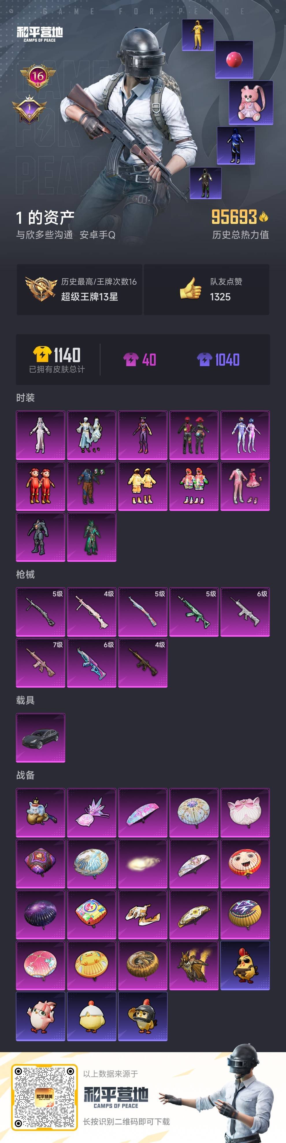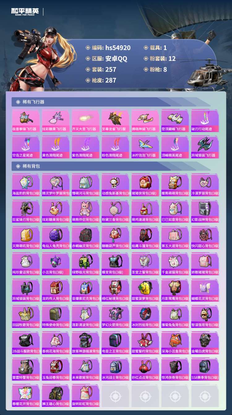hs54920 安卓手Q-16王牌印记-12粉装-8特效枪-1载具-95693热力值-257套装-2
