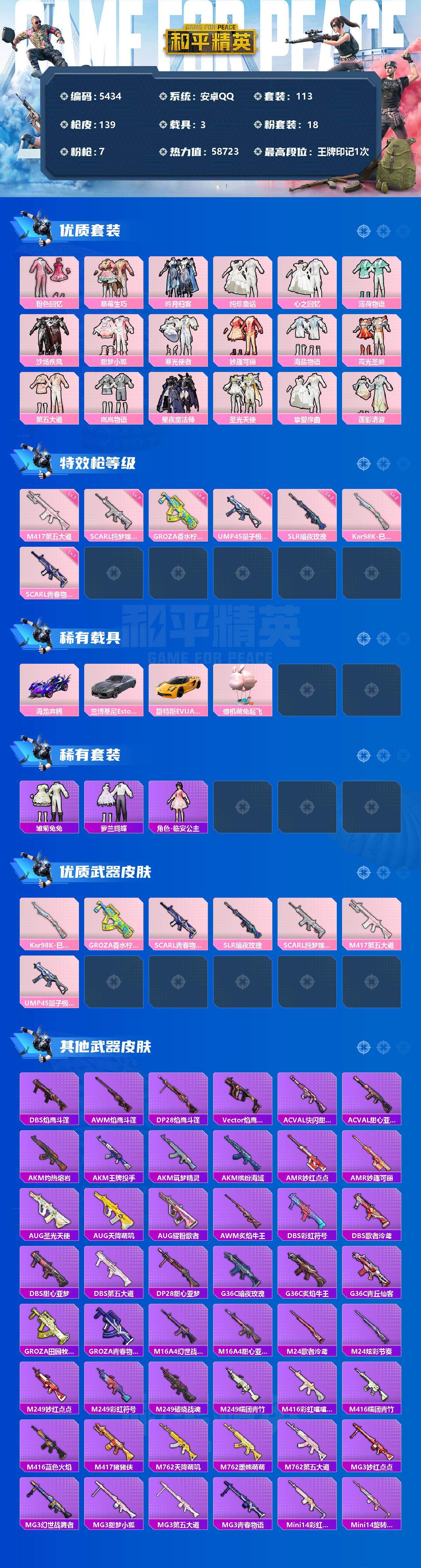 【5434】18粉装-7特效枪-3载具-58723热力值-1印记-113套装-