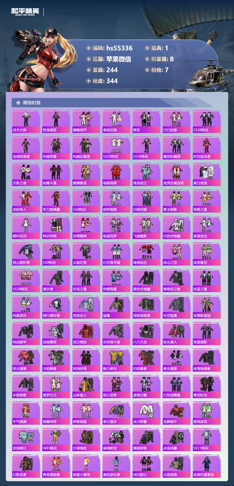 hs55336 苹果微-19王牌印记-8粉装-7特效枪-1载具-112291热力值-244套装-3