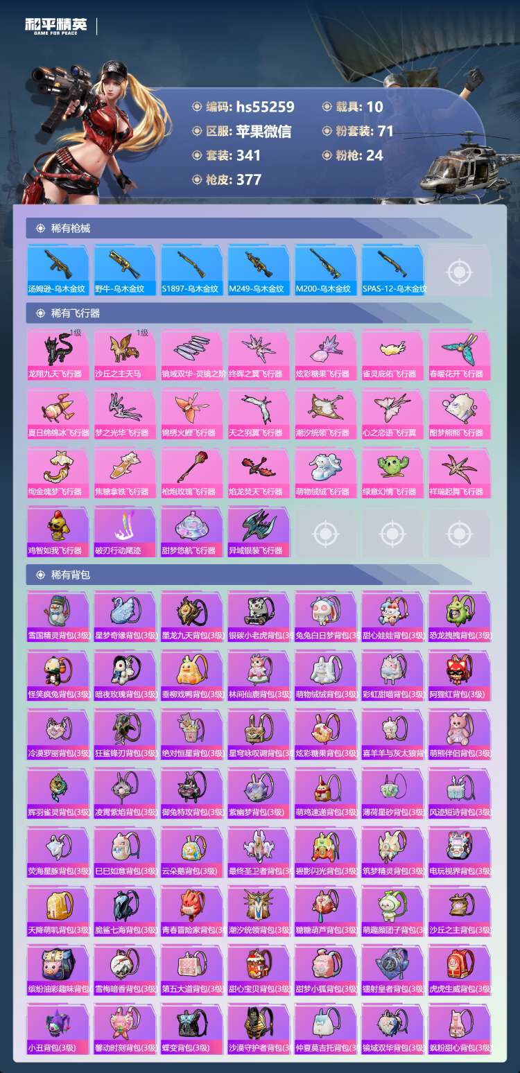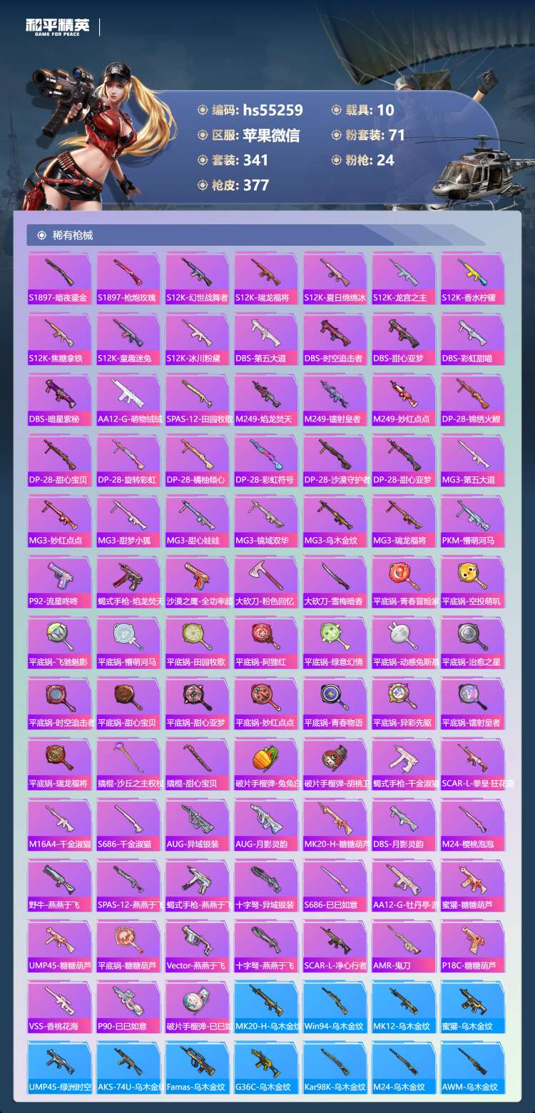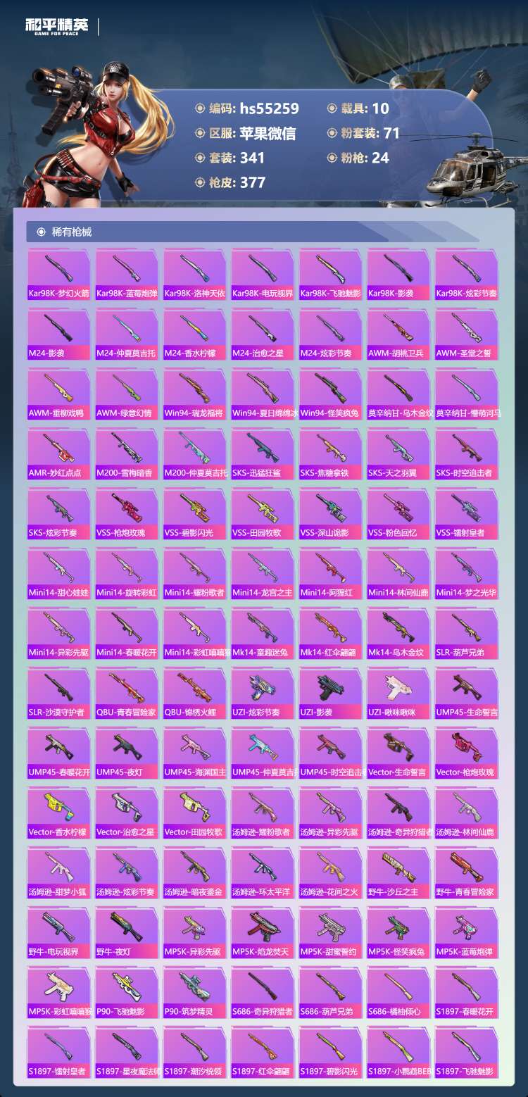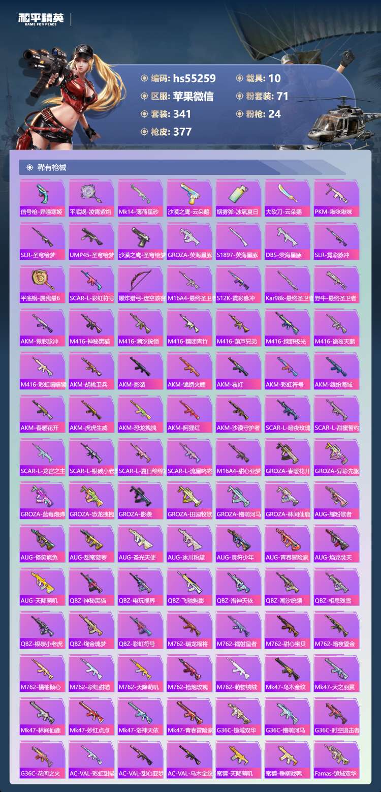 hs55259 苹果v-16王牌印记-有战神框-2红装-71粉装-24特效枪-10载具-18742