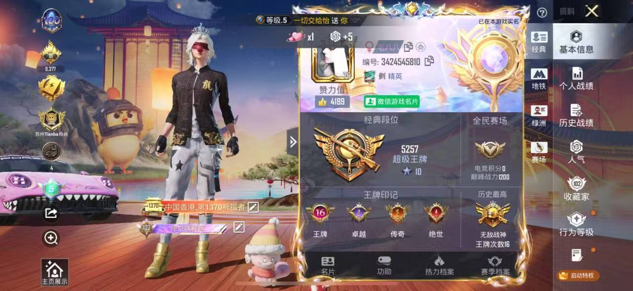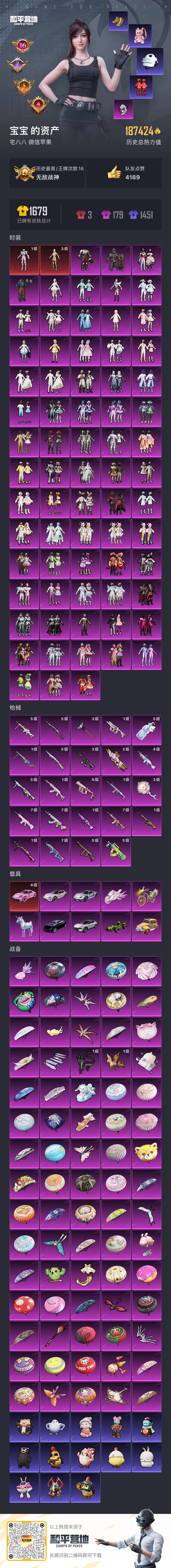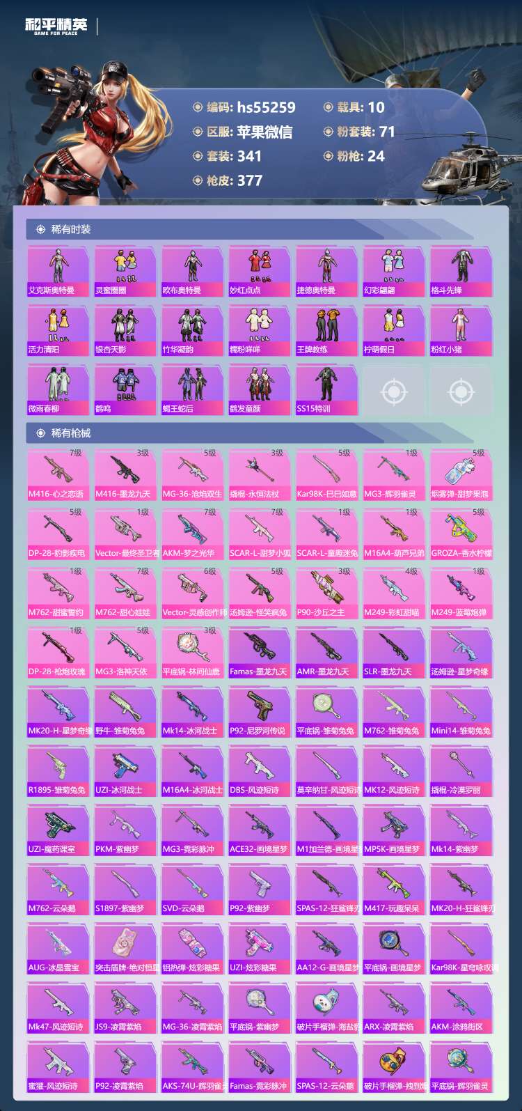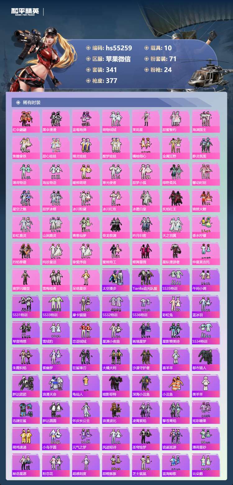 hs55259 苹果v-16王牌印记-有战神框-2红装-71粉装-24特效枪-10载具-18742