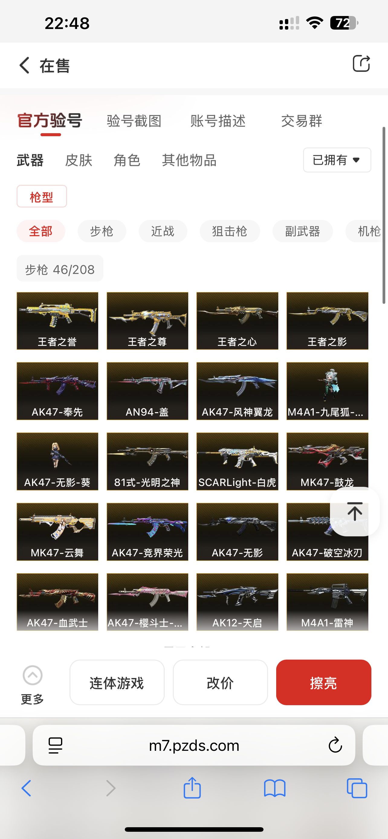 通过App,与卖家商议价格及保险,并向卖家索要账号最新截图,确认后下单购买。